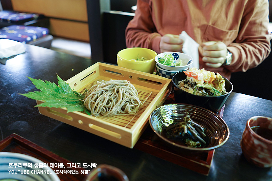 남편은 언제나 그랬듯 가장 좋아하는 소바 정식을 주문했습니다. 우동보다는 소바를 더 좋아하는 그이. 저는 밀가루가된건 유독 소화가 안되는 체질인데 이상하게도 메밀 소바면 역시 소화하기가 힘들더락구요 (그냥 불량 위 소유자인걸로) 지극히 저의 관점입니다만 일본인들이 아직까지 소바집에 줄을 서서 먹는것은 좀처럼 이해하기가 아직까진 힘듭니다 (웃음)