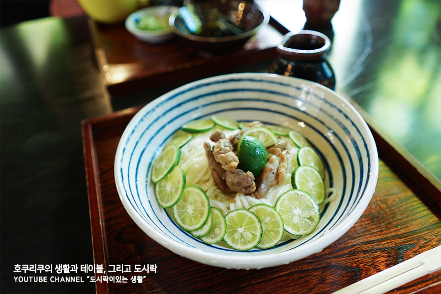 드디어 주문한 메뉴, 오타후쿠의 스다치우동입니다. 오타후쿠의 스다치 우동이 특별한 이유는 바로 질기다 질긴 히네토리라는 닭고기가 고명처럼 중앙에 스다치 조각과 함께 올려져있기 때문인데요. 저도 치아가 약한편이라 먹기는 조금 힘들었지만, 씹으면 씹을수록 고소하고 맛있는 고기와, 쫄깃하고 참 잘 익은 차가운 우동 면, 더불어 상큼한 스다치는 잘려진 씨앗까지 맛있게 씹어먹어 상큼하고 개운한 한끼로 만족스럽게 뱃속을 까득 채워냅니다.