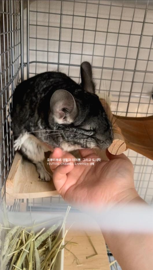 참고로 친칠라는 스트레스만으로도 급사할 수 있는 정말정말 예민한 동물로 알려져있지요. 덕분에 우리 부부역시 발걸음 습관, 계단을 오르고 내려갈때에, 문을 닫을때에, 이야기할때에도 조심조심 정말 많은 노력을 기울였어요. 우리부부는 우리집 친칠라 모리에게 주인이 아닌 함께 살고있는 덩치 큰 어느 두 동물에 불과하거든요. 그 큰 두 동물이 모리 자신에게 해를 끼치지않고, 재밌는것을 보여주고, 또 맛있는것을 나눠주는구나(웃음) " "무섭거나 위험하지않은 존재국나" 라는 인식을 심어주는것. 가장 중요한 것 같습니다.