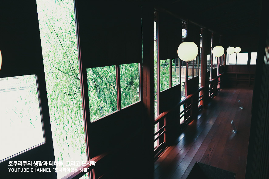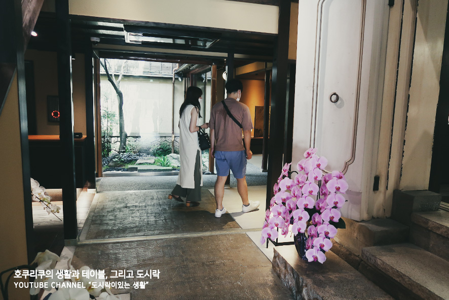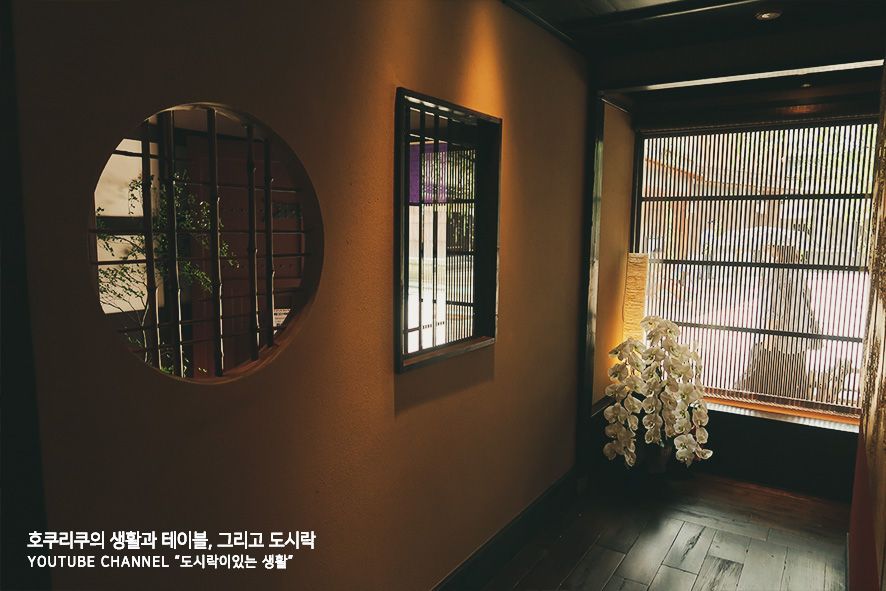 이 야나기앙이 존재하는 고민가 건물은 200여년의 역사를 가진 고민가입니다. 건물로 진입해 왼쪽 계단으로 안내를 받아 좌석까지 안내해주시는데요. 가게 밖에서 사람들이 메뉴는 많이 보지만, 어쩐지 쉽게 들어갈 수 있는 캐쥬얼한 분위기가 아닌것은 확실해요. (웃음)