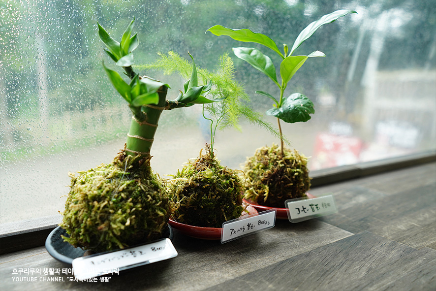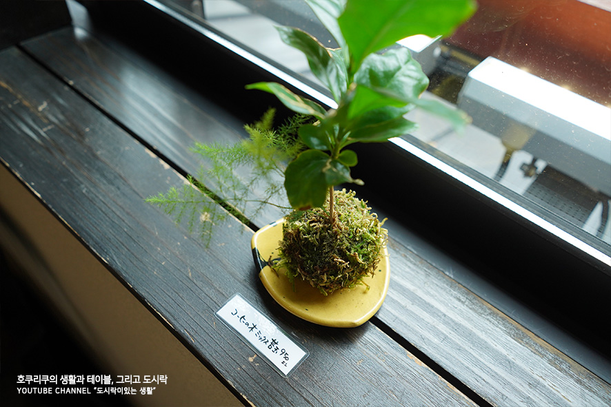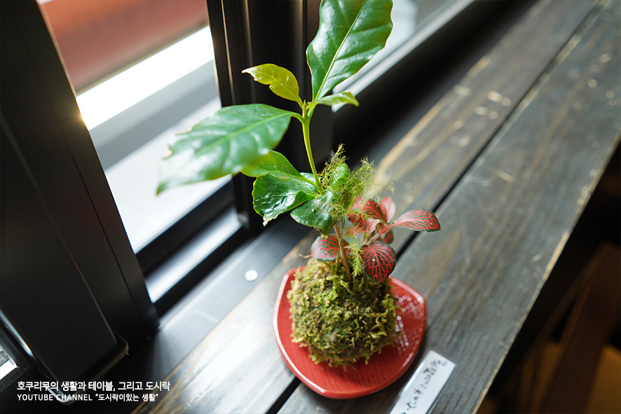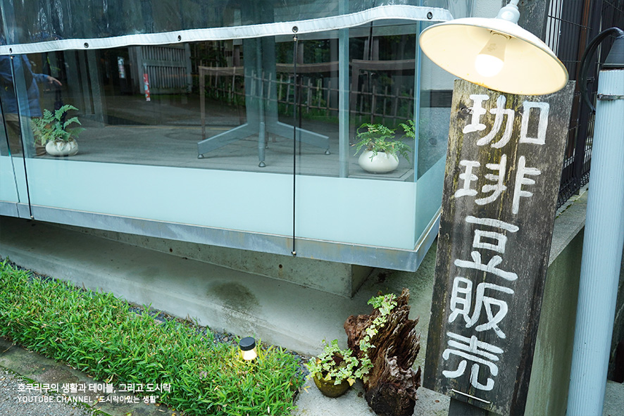 이곳 카페는 1층과 2층으로 나뉜 고민가 건물입니다. 1층 테라스의 카운터석에서부터 디스플레이된 작은 식물들은 바로 커피콩의 나무 가지들이 주를 이뤘습니다. 커피콩 나무 가지들을 다른 식물들과 조합하여 한화 1만원대 이하의 금액에 판매하는 것이었어요. 참고로 매장 밖에서는 무척 큰 화분에 있는 커피나무들을 많이 볼 수 있었는데 태어나서 커피나무는 처음 보았습니다. 마음에 드는 아이가 있었는데 금액은 800엔대. 사고싶었지만 마음만 먹고 돌아왔습니다. 미스트 비가 내리는, 아니 뿌려지는 애매모호했던 봄날의 날씨.