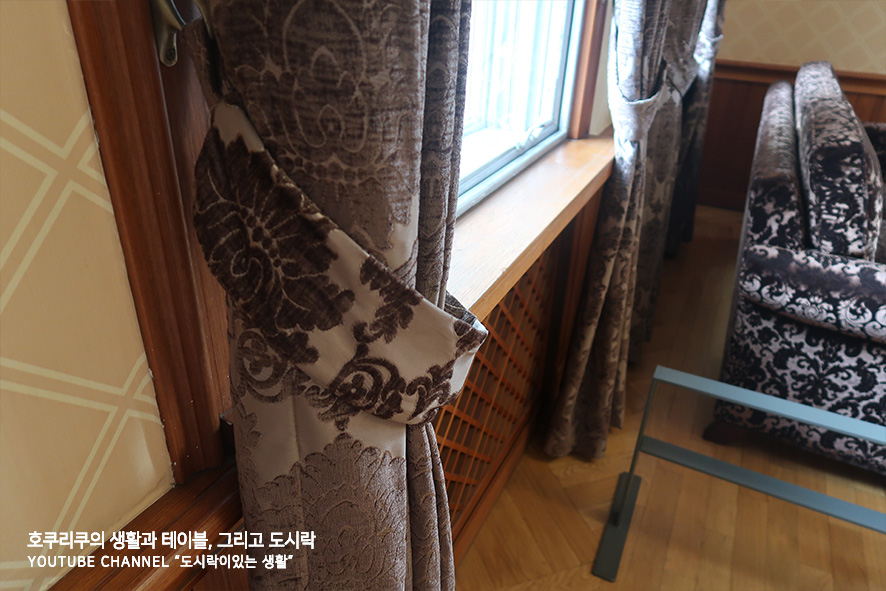 나무 바닥의 결, 큼지막한 창문 그리고 요즘엔 보기드문 커튼의 색감까지, 어느 한곳 세세하게 과거로 돌아가지 않은 기분이 드는 곳은 없었습니다. 아무도 앉아있지않은 소파, 의자들. 잠시나마 이곳에 서서 김구 선생님이 앉아계신 모습을, 사람들과 회의하는 모습등을 상상해봅니다.