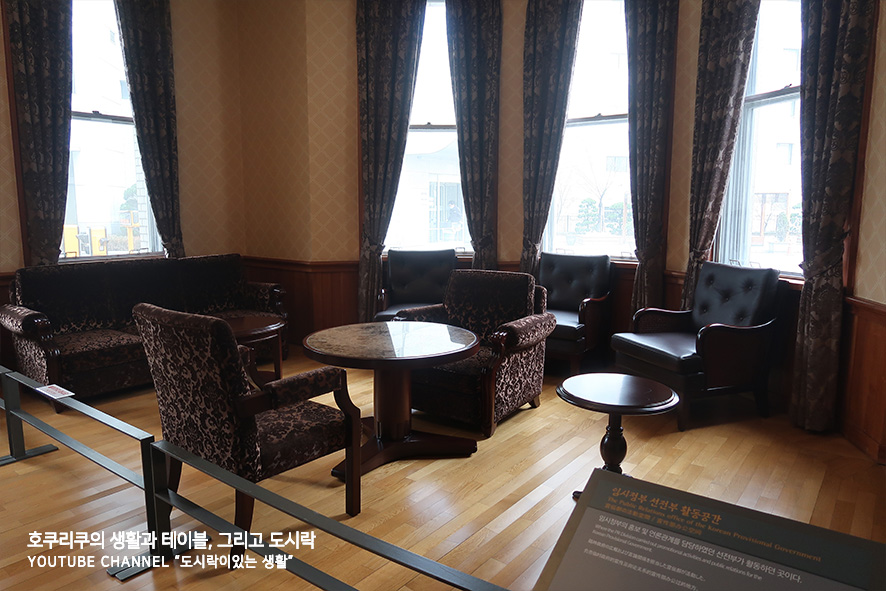 경교장에 진입하여 넓은 홀의 좌측 복도쪽에 위치하고 있어요.