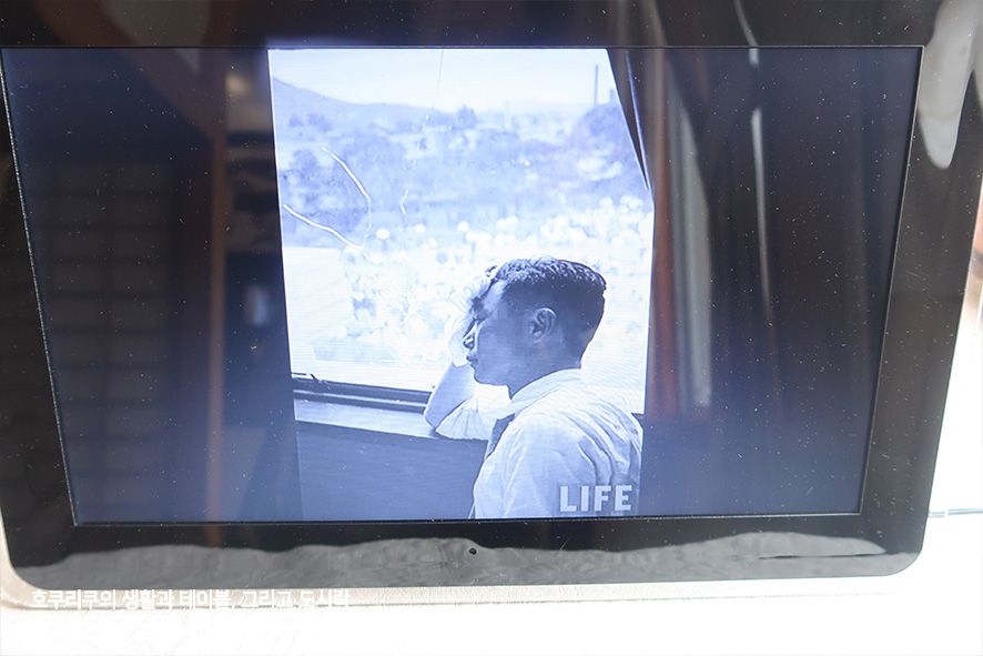 작은 탁자위에 세워진 사진속 모습과 제 두눈으로 보고있는 공간이 오버랩되며
