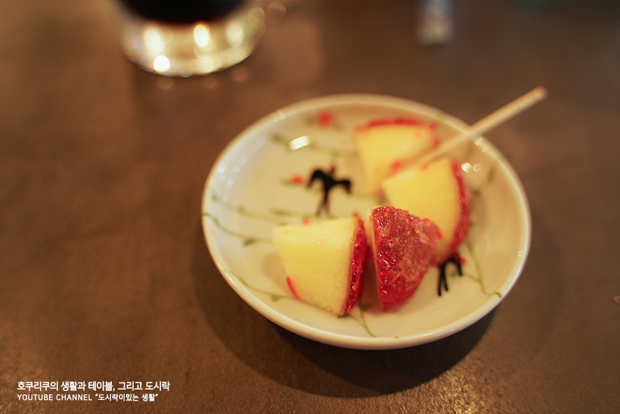 정가한 일본식 정식 식사를 마치고, 입안에 들어온 사과 탕후루는 행복의 맛 그 자체였습니다.
