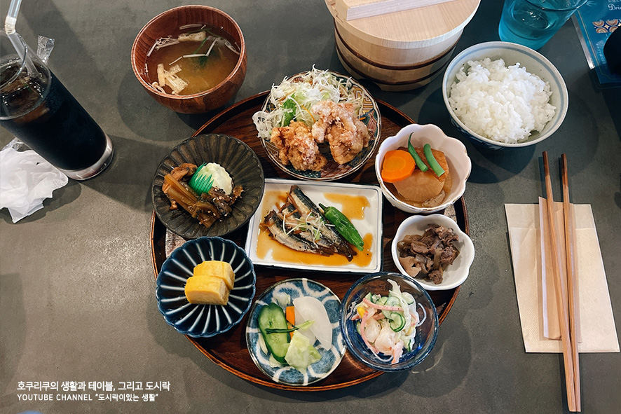 목재의 오히츠 안에 밥을 따끈따끈하게 밥을 담아주고, 식더라도 맛있게 식기때문에 밥먹는 내내 쫄깃하기까지한 밥을 맛있게 먹을 수 있었습니다. 오히츠 정식을 판매하는 곳은 대부분 밥을 리필받을 수 있는데요. 저는 따로 리필을 하진 않았고, 남편은 한번 더 리필해서 먹었어요.