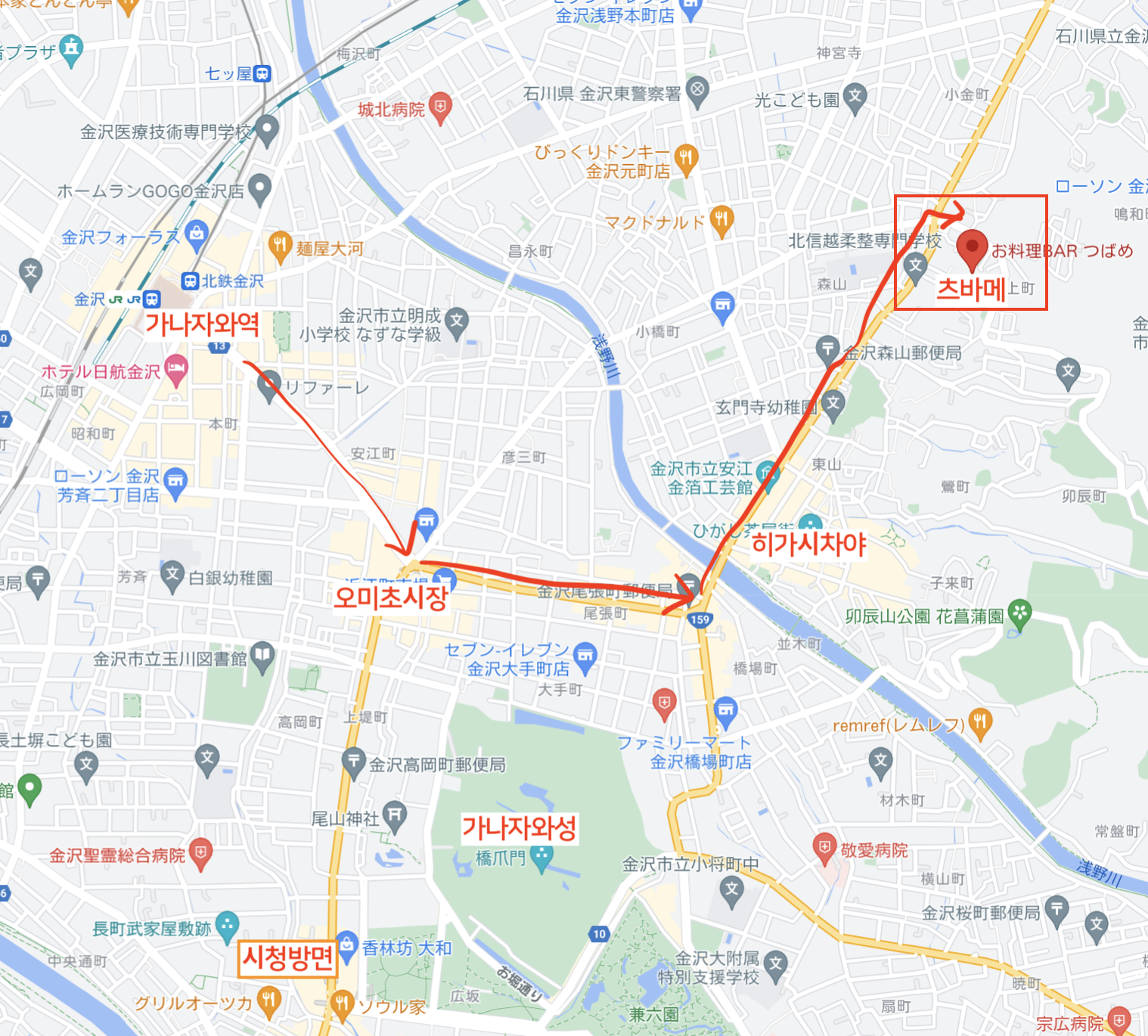 가나자와의 산 중턱 마을에 작년 2020년 가을, 제비라는 Bar가 오픈했습니다. 우리부부의 가나자와 구루메 체크 리스트 목록에 들어있던 곳이 바로 이곳 츠바메 라는 Bar인데요. 이름처럼 저녁엔 BAR를 운영하고 낮에는 11시무렵부터 런치 식사가 가능한 식당으로 운영되고있습니다. 츠바메의 위치는 히가시차야에서 차로 몇분거리. 산쪽 교차로에서 도보로 5분에 위치하고 있습니다.
