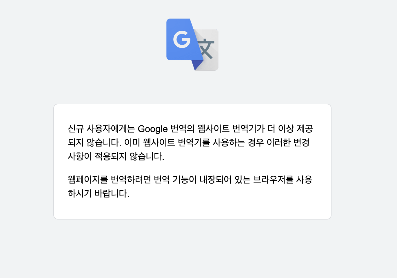 일단 본론부터 말씀드리면 구글에서 제공했던 웹페이지 번역 기능은 현재 중단된 상태입니다.