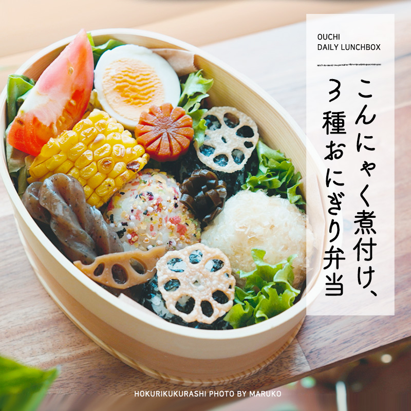 일본도시락만들기 - 스아게(素揚げ)곤약조림과 3종 주먹밥으로 만드는 남편도시락