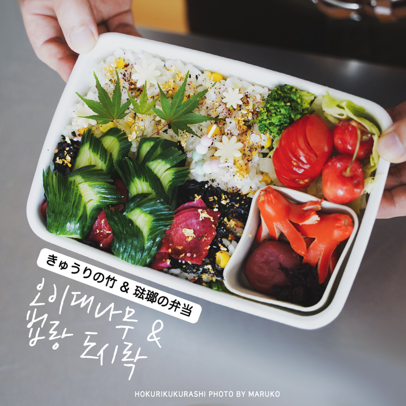 밥을 담는것도, 꾸미는 요령도, 생각지도 못한 팁 또한 멍때리고 보는 TV프로그램으로부터 정보를 얻게될 경우가 많아요. 오늘 도시락 역시 평소엔 생각도 못했던 오이로 만드는 도시락 공예도 마찬가지. (무를 절여 접어만드는 꽃공예도 있는데 그것도 곧 시도해볼까해요 ) 집에 많이 사용하고 있는 법랑을 도시락 케이스로도 활용 할 수 있다라는것 또한 여러모로 가지고 있는 식기를 충분히 골고루 사용하는데에 장점이 많은 것 같습니다.