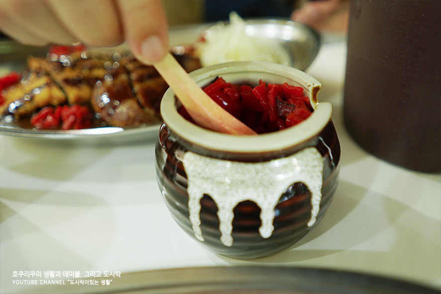 고기의 담백한 단면을 사진에 남겨보았어요. L세트는 양이 꽤 많은 편입니다. 딱히 소식을 하는 분들이 아니라 하더라도 조금 거북할정도로 배가 부른 넉넉한 양이니, 주문하실때에 참고하시면 좋을 것 같아요. 돈가츠의 튀김에는 어쩐지 기름까지 쪽- 빠진 느낌이었어요. 미리 튀겨두고서 살짝 꺼내 준비해두는 것이 아닐까 하고 짐작하게 됩니다. 아주 뜨끈하거나 방금 튀겨낸것은 아니었거든요.