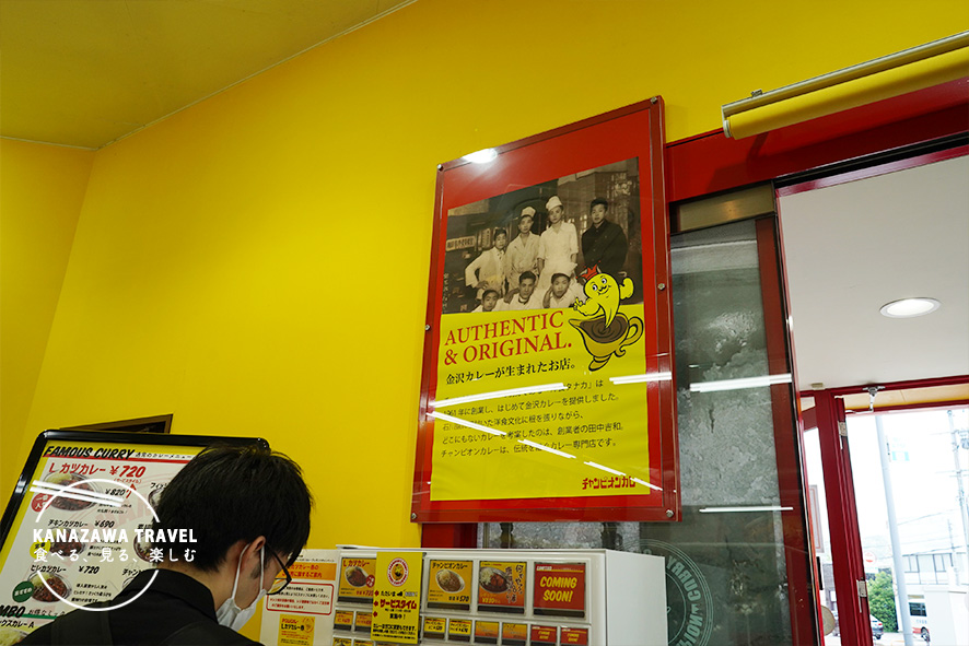 챔피온 카레의 외관은 언제나 노란색과 빨간색의 건물로 한눈에 확- 들어옵니다. 1961년 가나자와 시내에서 "양식 다나카" 가 창업한 이후, 사실 지금의 본점은 가나자와시가 아니라 옆 이웃동네인 노노이치시에 존재하게 되었습니다. 지금에 이르기까지 가나자와 카레의 독특한 요리법과 스타일을 바로 이 창업자 다나카씨가 만든것입니다. 때문에 다나카상의 카레는 가나자와 카레의 "원조"로 불리기도합니다.