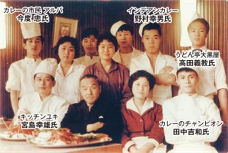 현내에서 훌륭한 요리사가 모이게되고, 그안에 다나카씨, 미야지마씨, 이후에 "아루바카레"운영에, 그리고 지금은 공장장을 맡고 있는 콘도타다시씨, 노무라 유키오씨, 다카다 요시노리씨 등, 그렇게 지금의 전통이라고 하는 가나자와 카레 브랜드들의 창업자들이 한자리에 모이게됩니다.