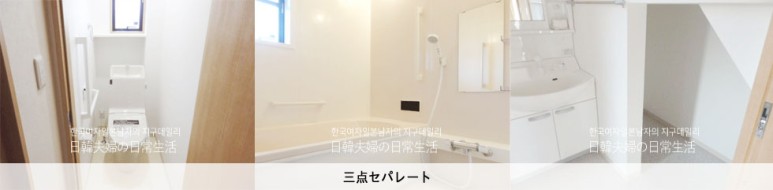 욕조, 세면대, 화장실(변기) 가 모두 분리되어있는 경우에는 【三点セパレート】 산텐세파레토 (세점 분리)