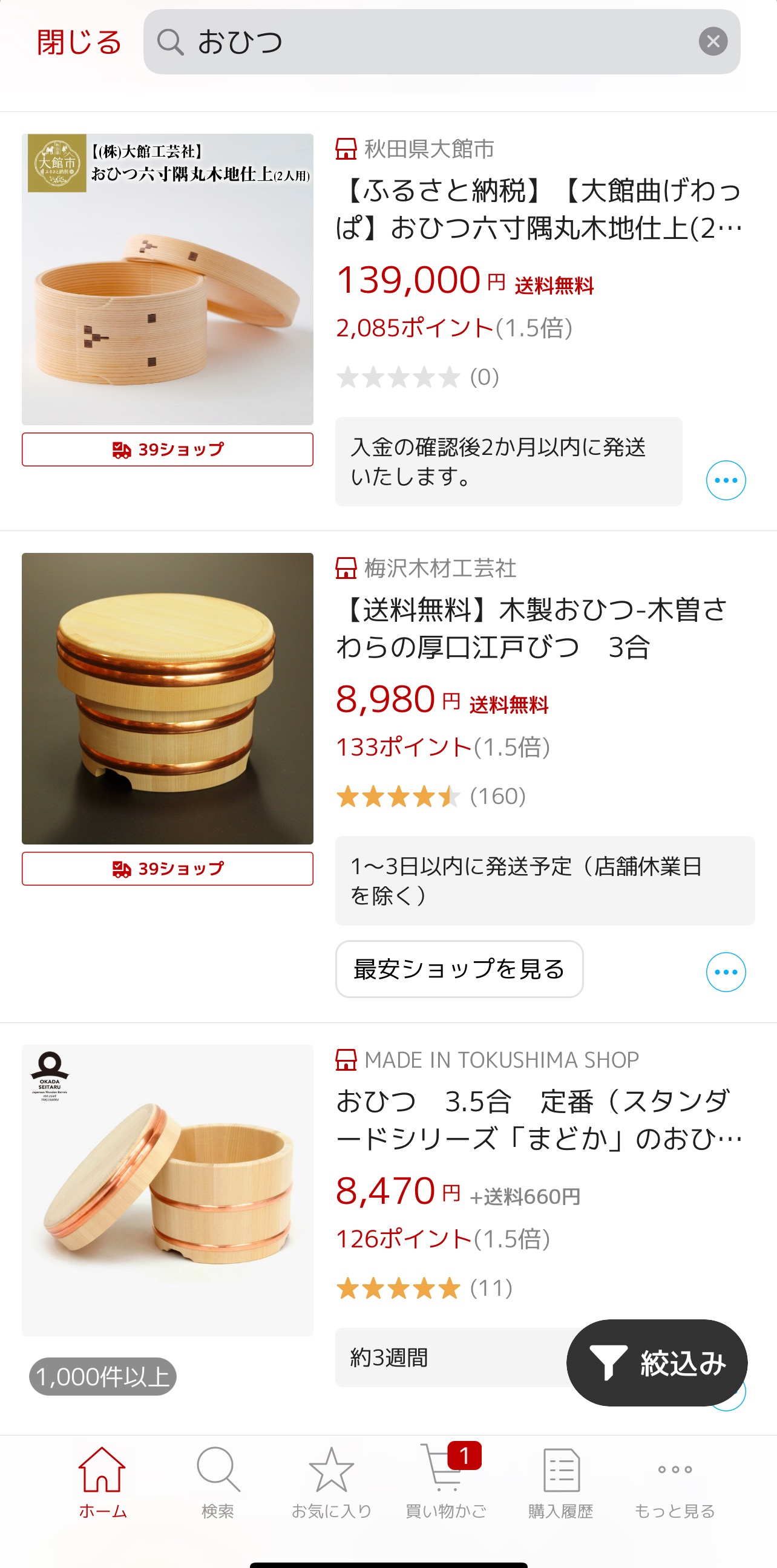 끓인 죽과 밥을 넣어 보관하기 위한 원형 또는 타원형 모양의 식기로, 메시츠기(めしつぎ), 메시바치(めしばち)라고도 불립니다. 대부분 목재, 금속에 옻칠이 칠해져있으며, 현재에는 플라스틸이나 보온병 같은 것들이 출시되고 있지만 이들은 흡수성, 조습작용이 적기 때문에 밥이 쫀득하지 않은 단점이 있습니다. 전통적인 목제의 것은 유용할 정도로 흡수성을 자랑하고 따뜻한 밥을 넣었을때 여분의 수증기를 흡수하기 때문에 밥이 맛있게 보관될 수 있습니다.