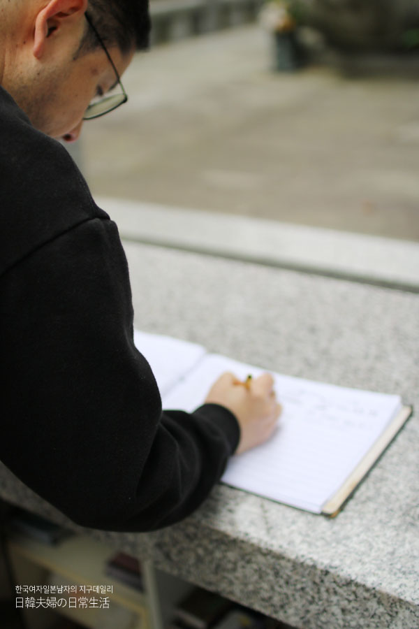 자신의 이름과 주소 등을 기록하는 남편. 저도 따라 이름과 날짜 등을 기록했고 정말 많은 분들의 방명록도 볼수 있었습니다.