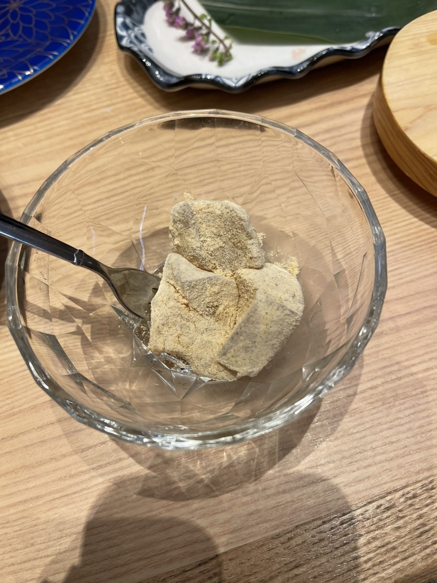 디저트는 와라비 모찌가 나옵니다 :) 지금까지 먹었던 와라비모찌 중에서 가장 식감이 튼실하고 정말 일반 떡 먹는 느낌이예요.