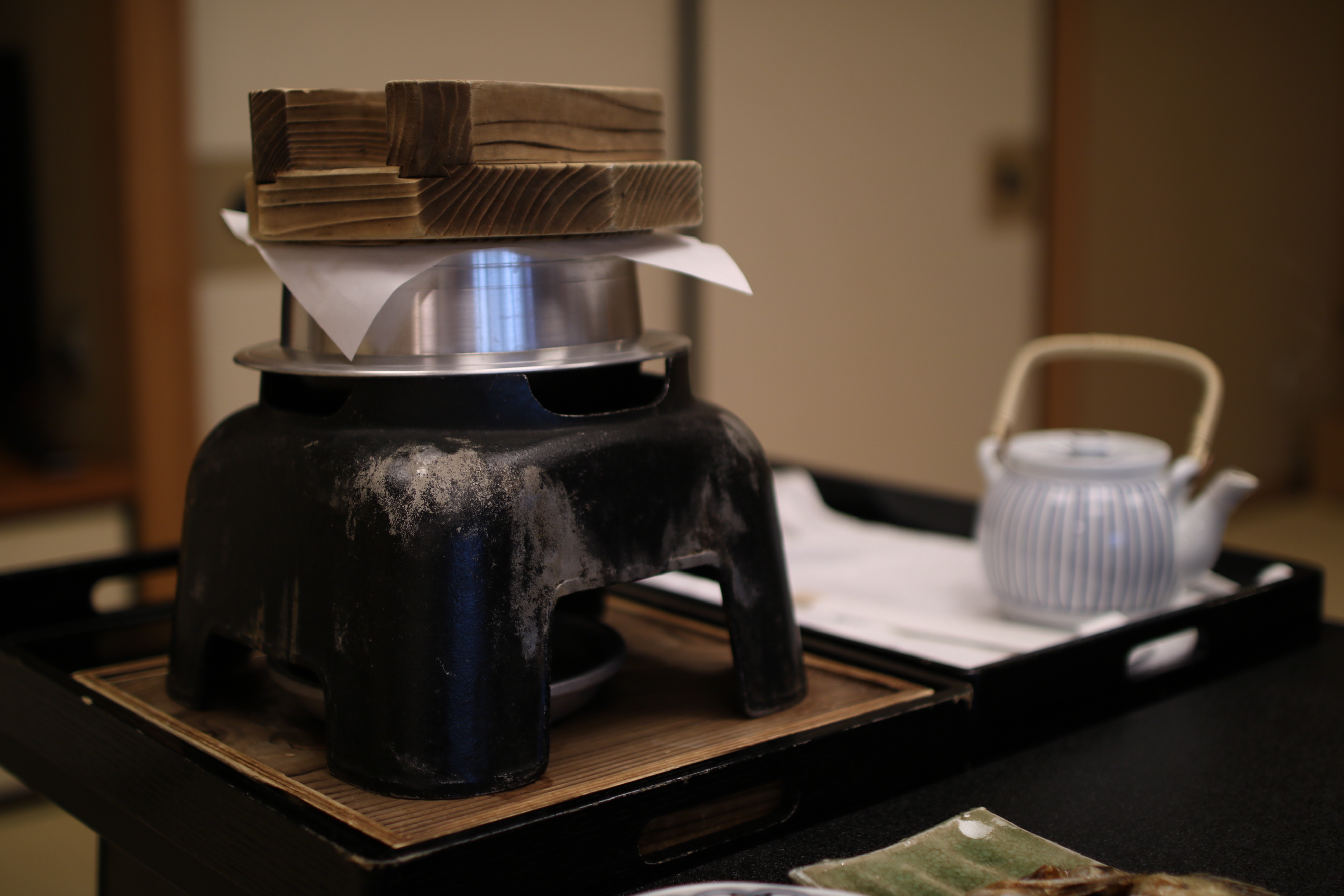 나카이상이 들어오셔서 테이블보를 깔아주신뒤, 옆 한켠에 아게젠과 사게젠을 준비해주십니다.