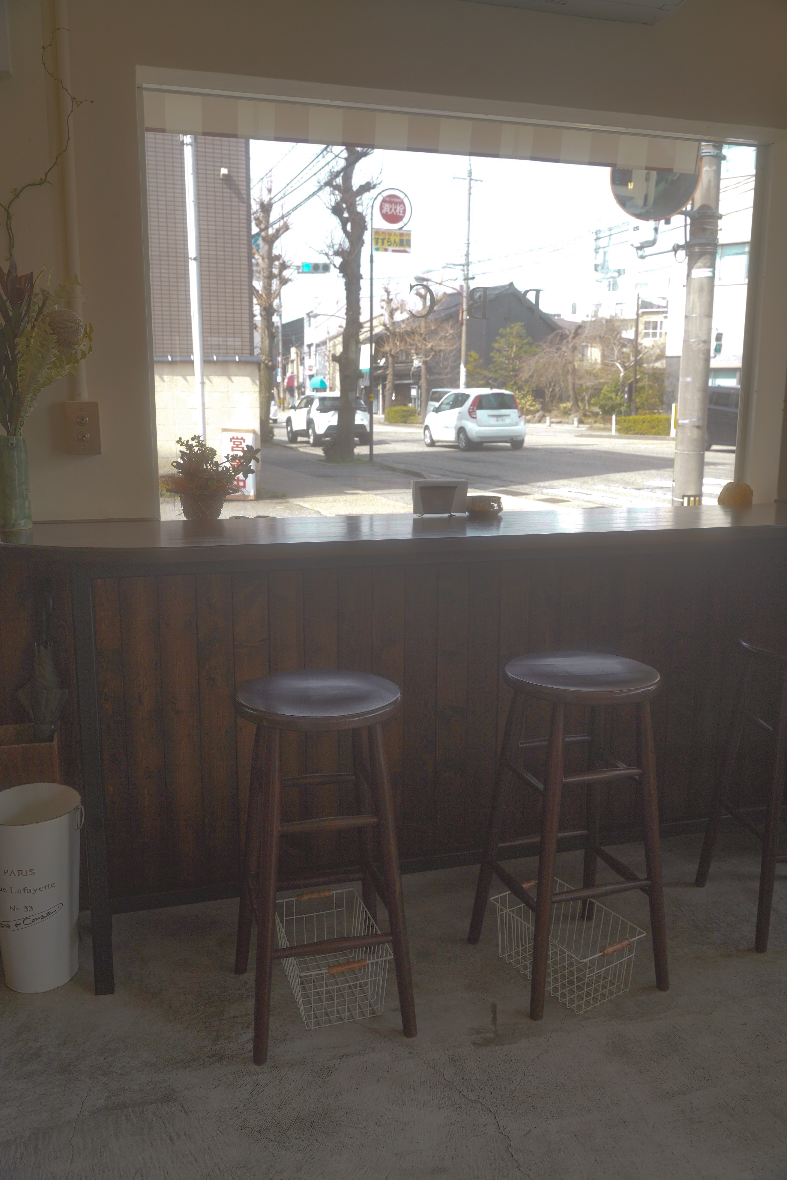 창가쪽 좌석들의의자는 꽤 높이가 있는 의자이고, 이곳에서 바깥의 도로를 보며