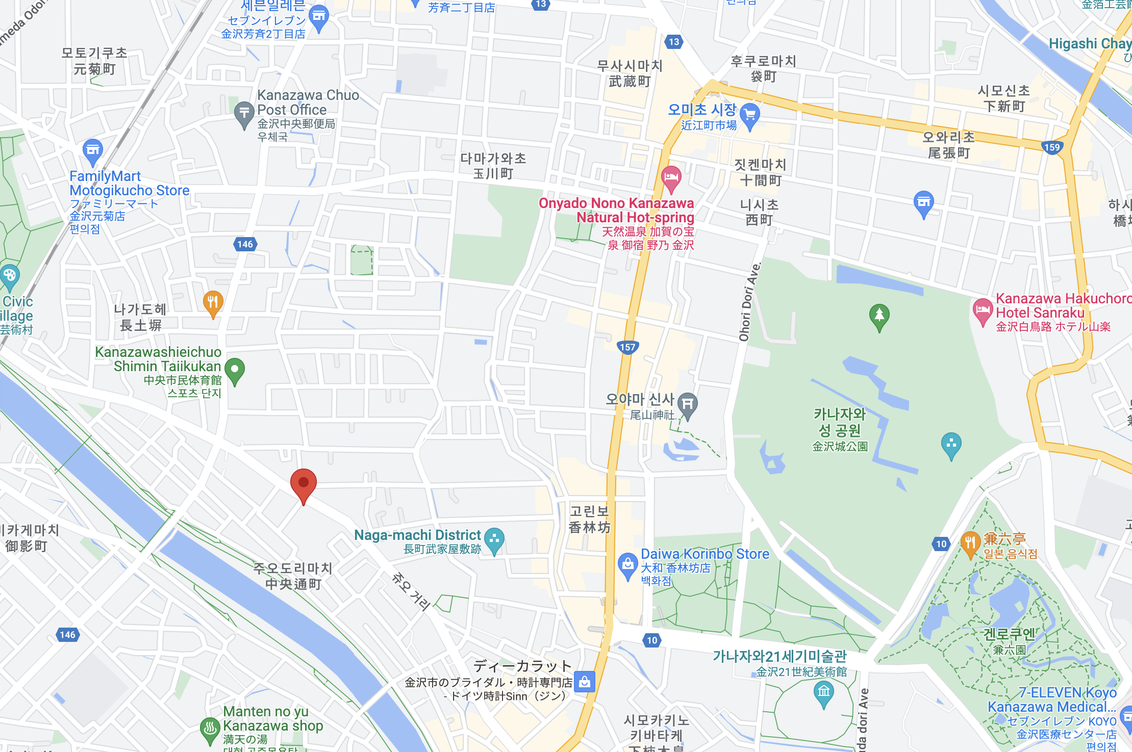 가나자와에서 가장 번화한 거리라고 한다면, 바로 코린보 /香林坊(こうりんぼう) 입니다. 가나자와역에서 쭉- 직진한 큼지막한 도로 끝 정면에는 신선한 해산물이 가득한 오미초 시장이. 그