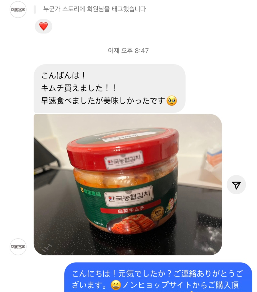그리고 이전에 한국 김치 주문하는곳을 궁금해하셔서, (일본 마트에 파는거 말고