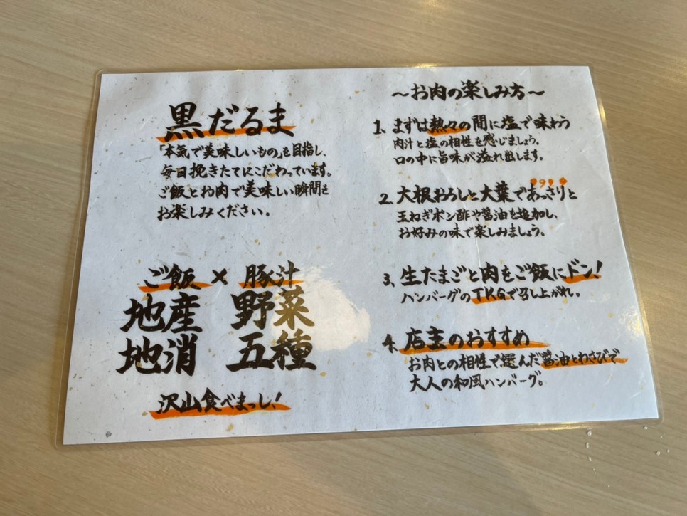 테이블에는 함바그를 맛있게 먹는 방법이 기재되어있습니다.