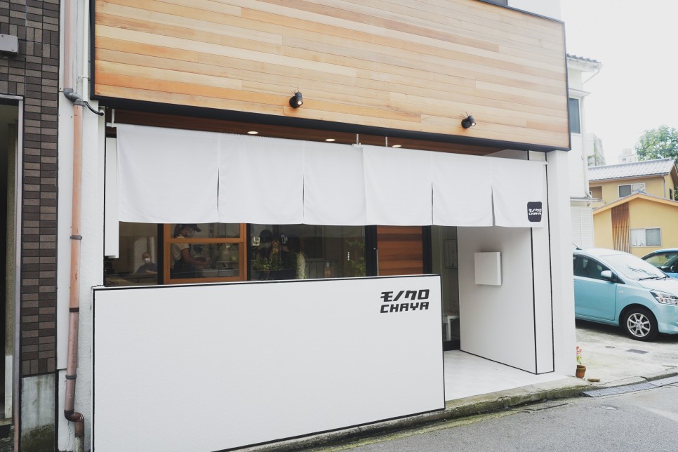 가나자와의 모노쿠로차야 카페는 나무 판자의 패턴들과 더불어