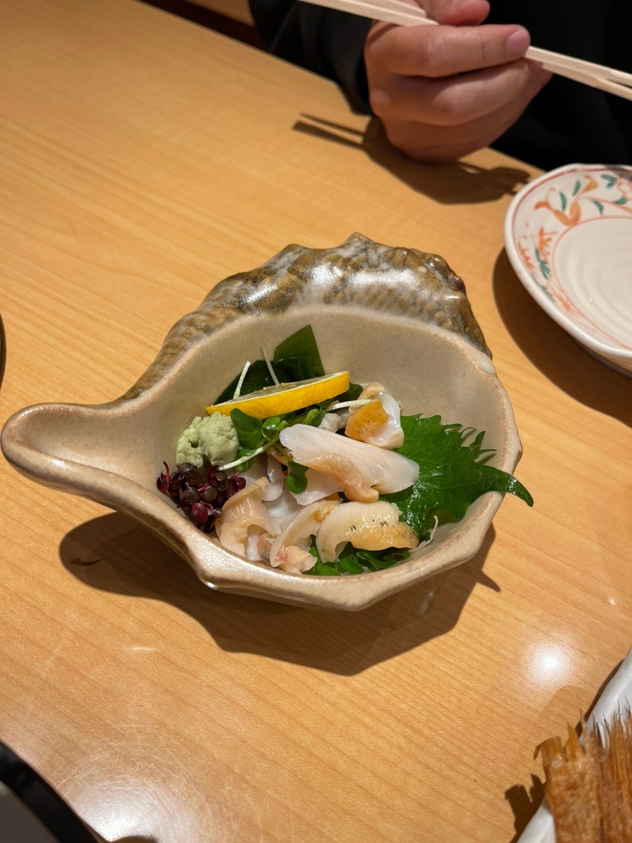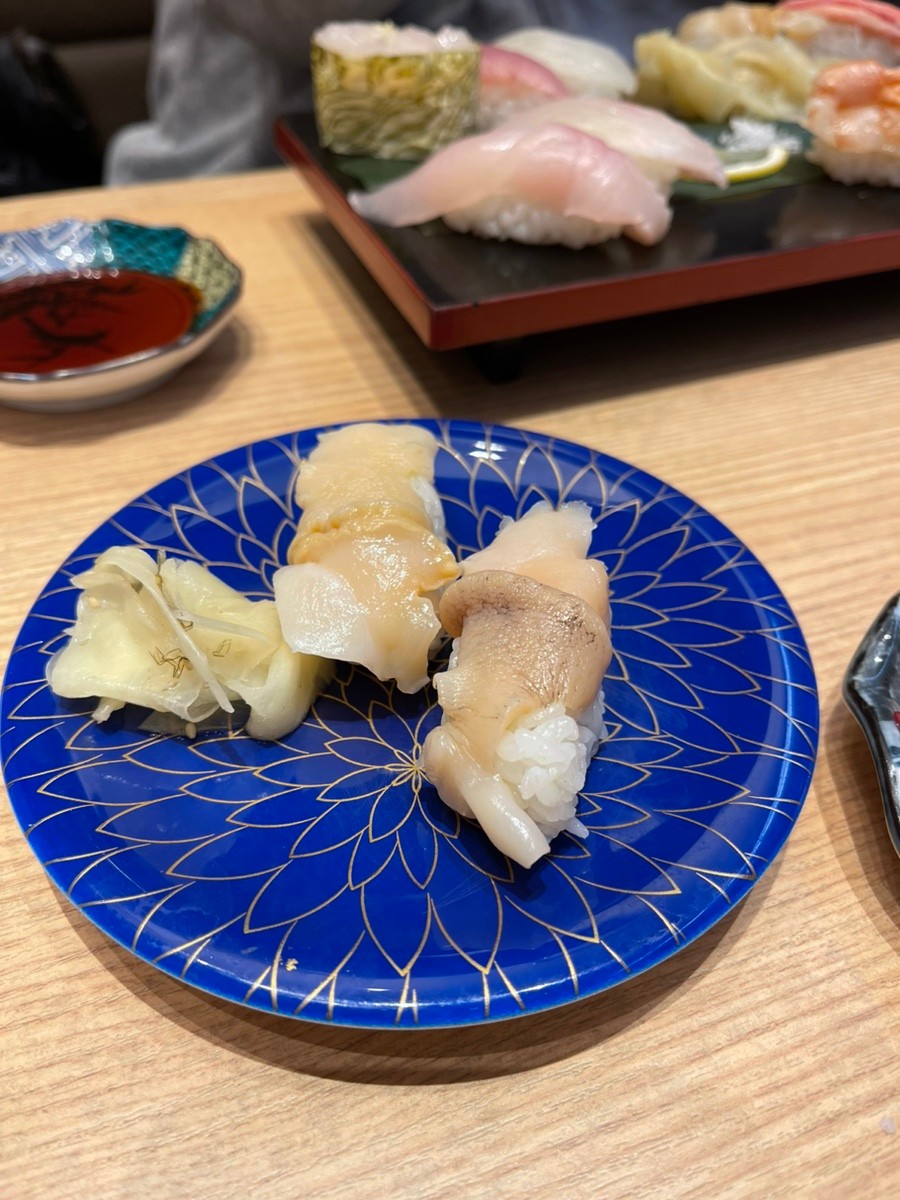 바이가이 초밥은 , 지금까지 먹었던 가나자와 바이가이 중에서 가장 탱글한 식감이 적었던