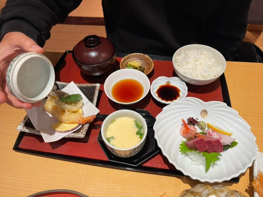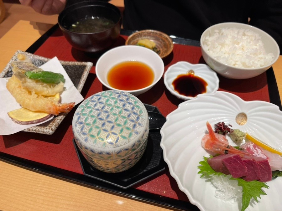 적당한 양의 튀김, 회, 자완무시, 미소시루