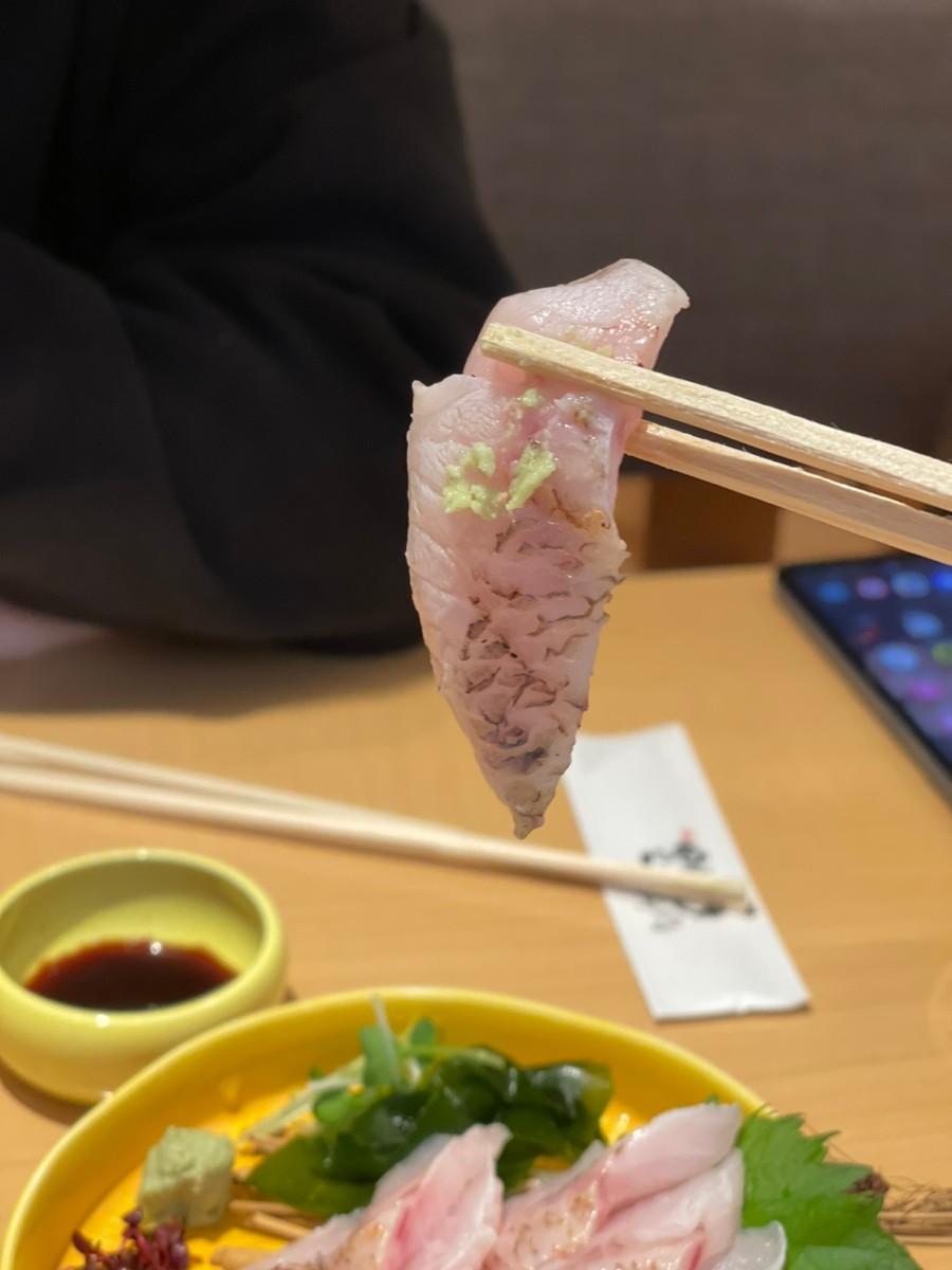 남편 입에서 이런 소리 나온건 정말 처음이었어요. 처음 메뉴가 나왔을때에 생선살 단면에 흰 부분이 보여서