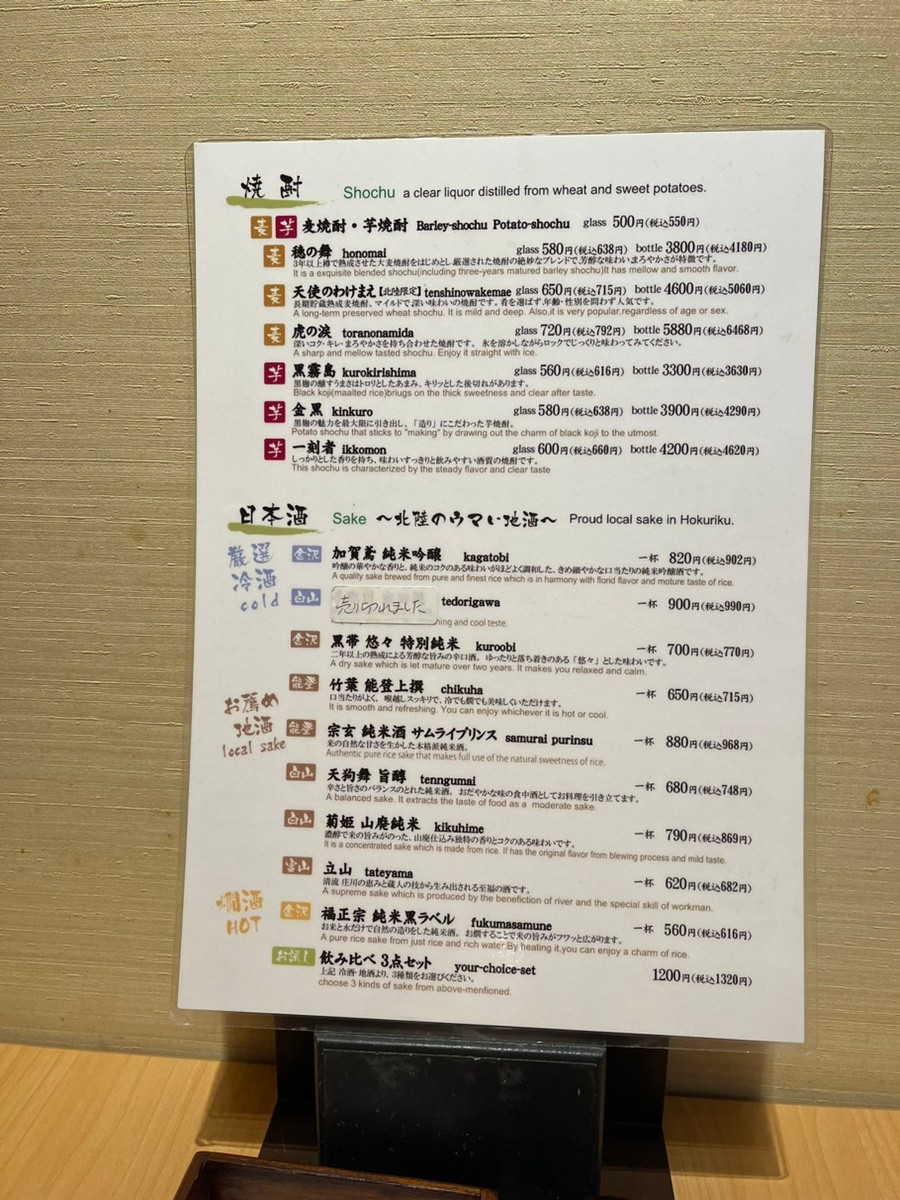 가나자와에서 먹을 수 있는 가나자와, 노토, 하쿠산 사케도 있으니,