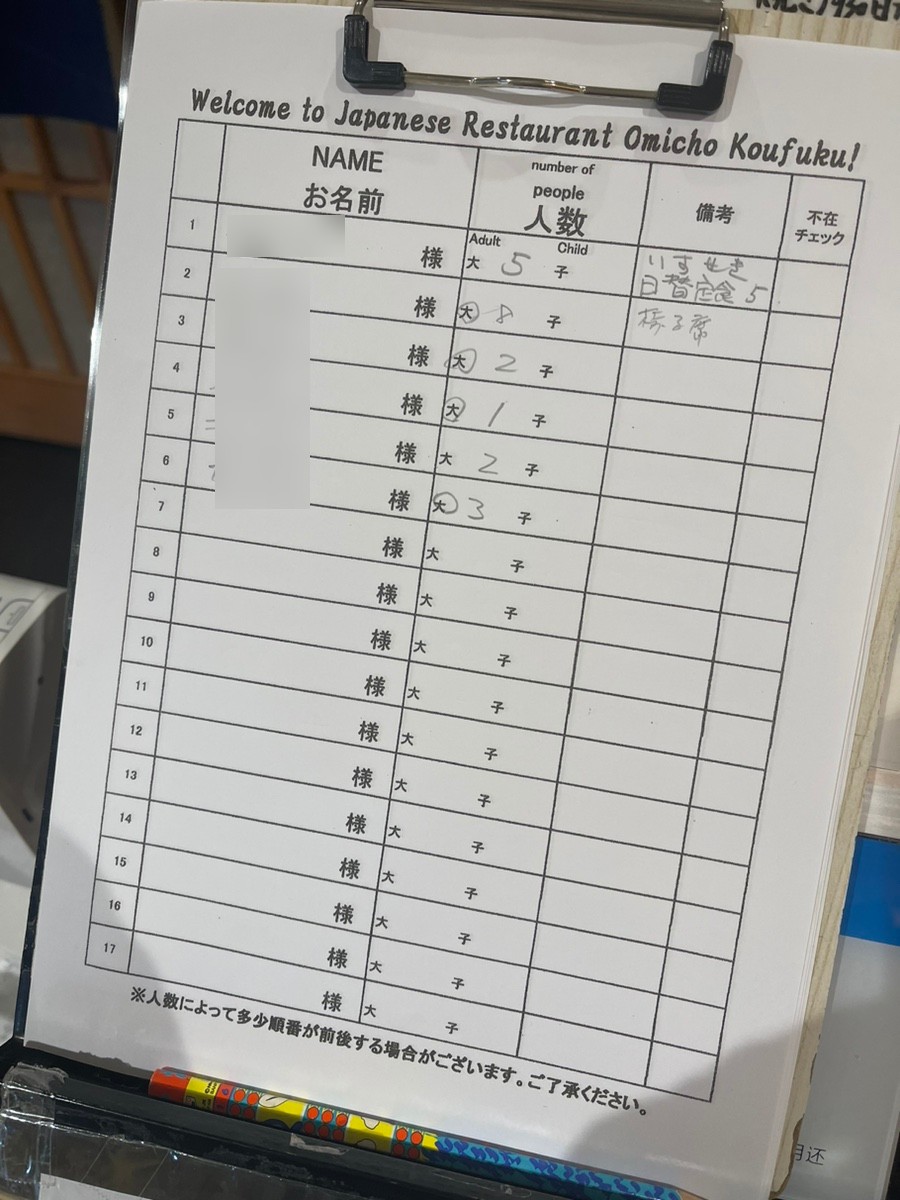 코우후쿠는 가게 밖에 마련된 벤치에 앉은 순서대로 입장하는게 아니구요