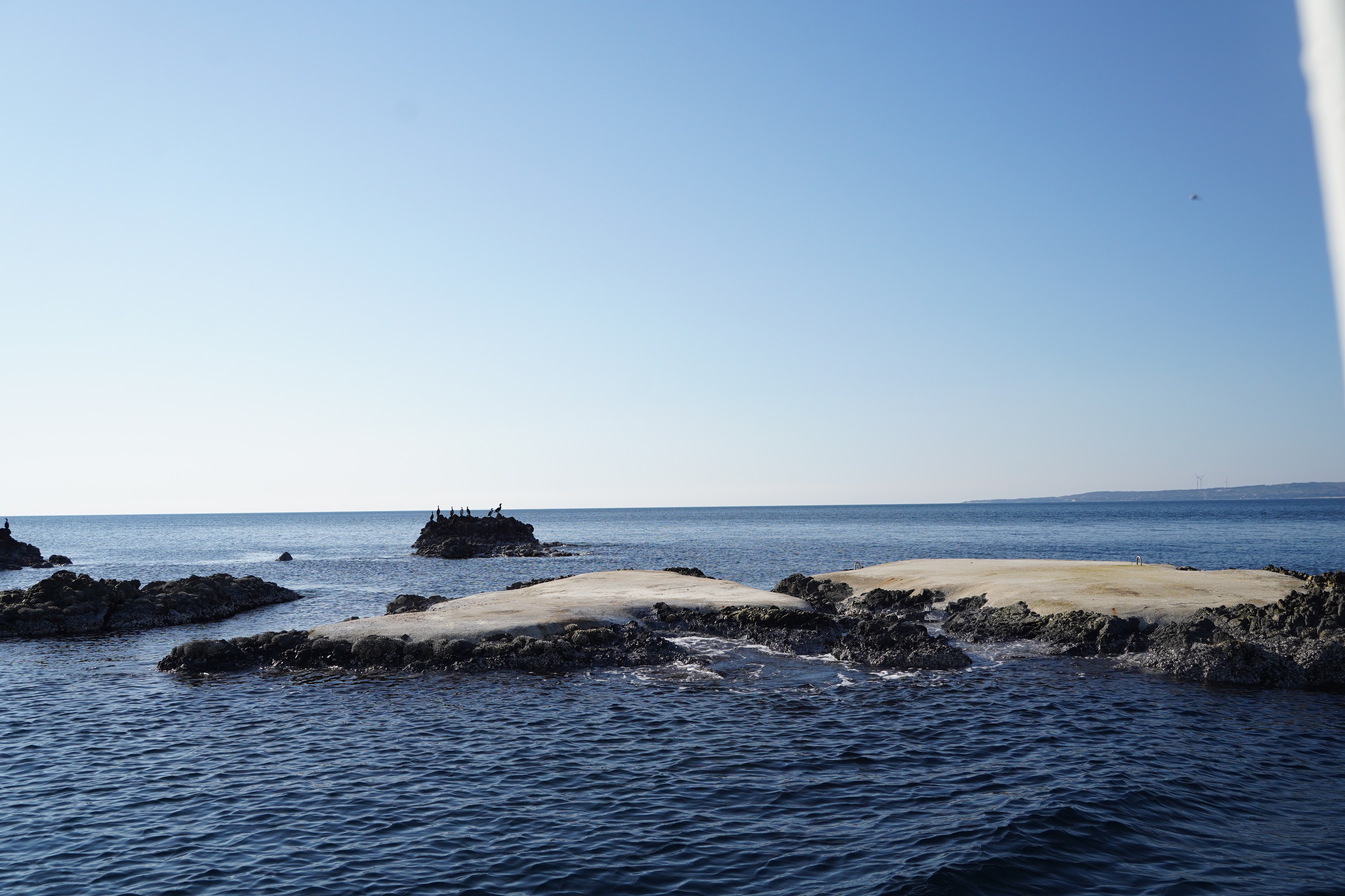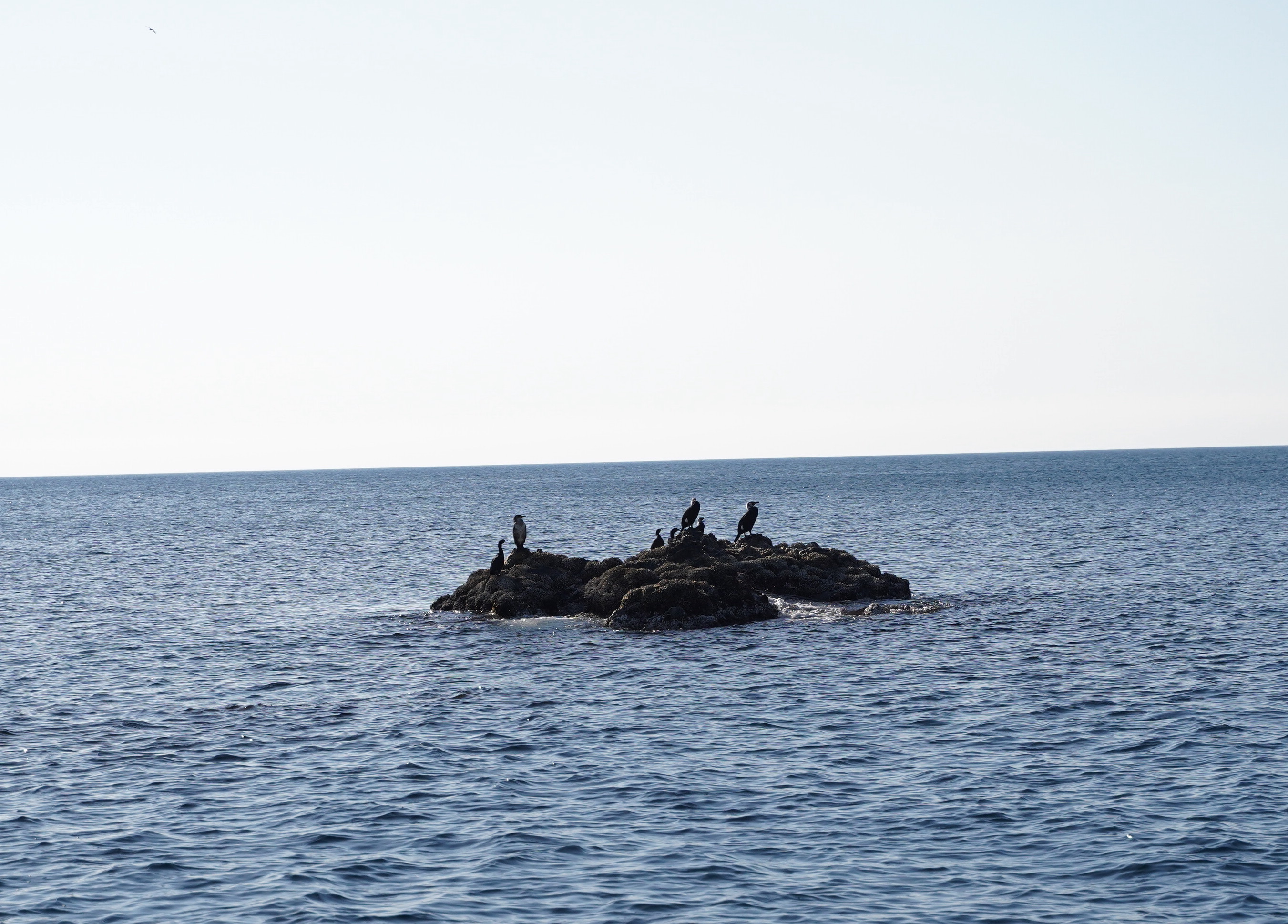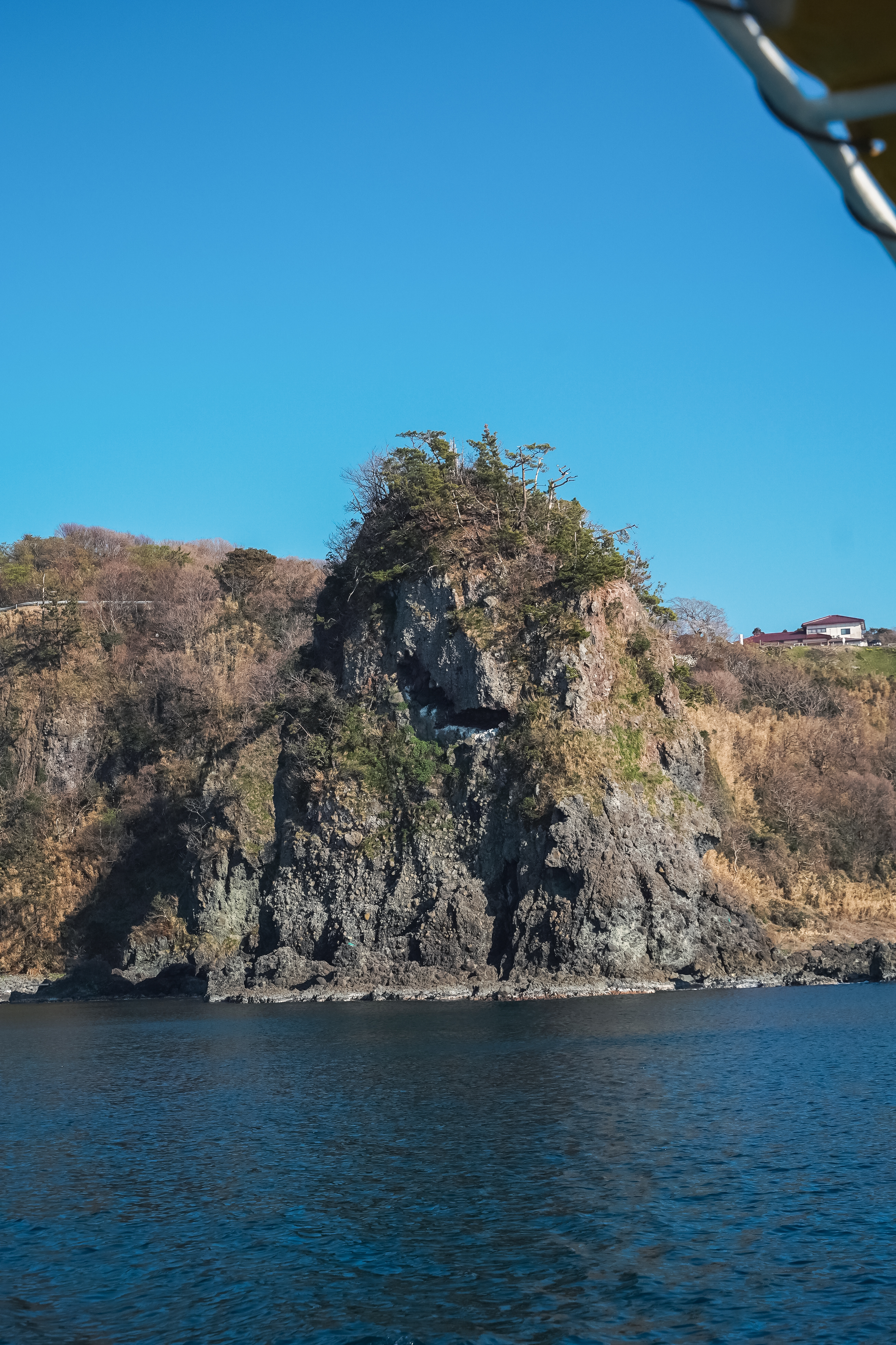 타카노스이와는 배를 타고나서 얼마 뒤 바로 보이는 포스 넘치는 돌섬같았어요.