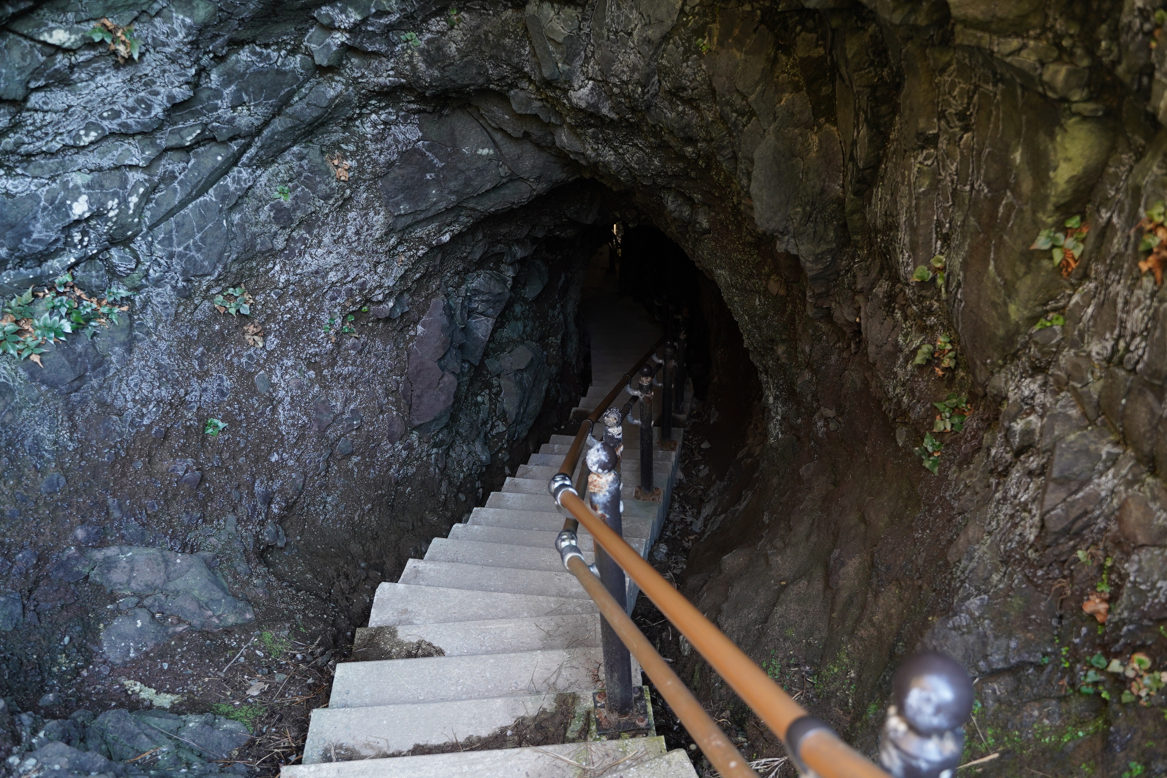 "간몬"은 오랜 시간, 세월을 두고 파도에 의해 바위가 깎이고 깎여 만들어진 천연 동굴입니다.