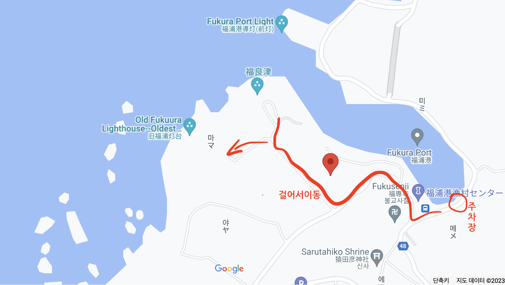 이 동그라미 표시된 곳이 바로 후쿠우라항.