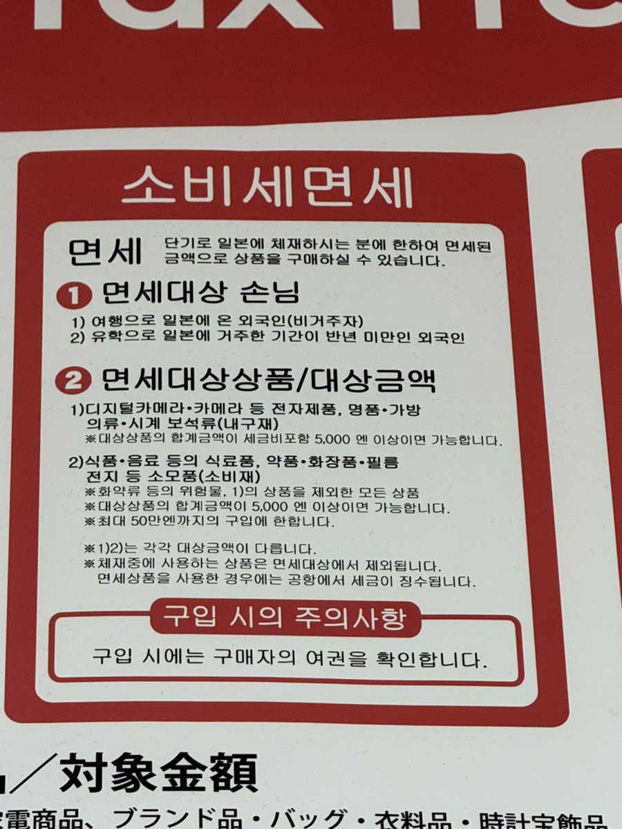 방문하신분들의 면세 이용 기준은 다음과 같아요.