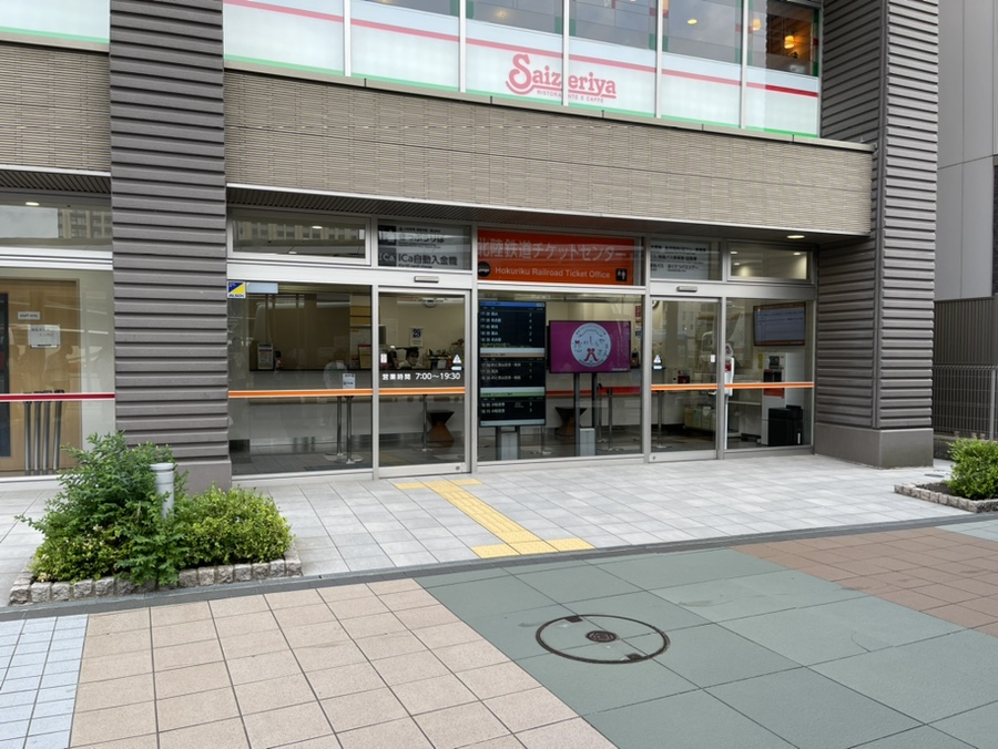 또한 가나자와역 서쪽출구 왼쪽 방면에 버스정류장 3~4번 홈 좌측에 위치한 티켓 센터에서 ica카드를 판매합니다.