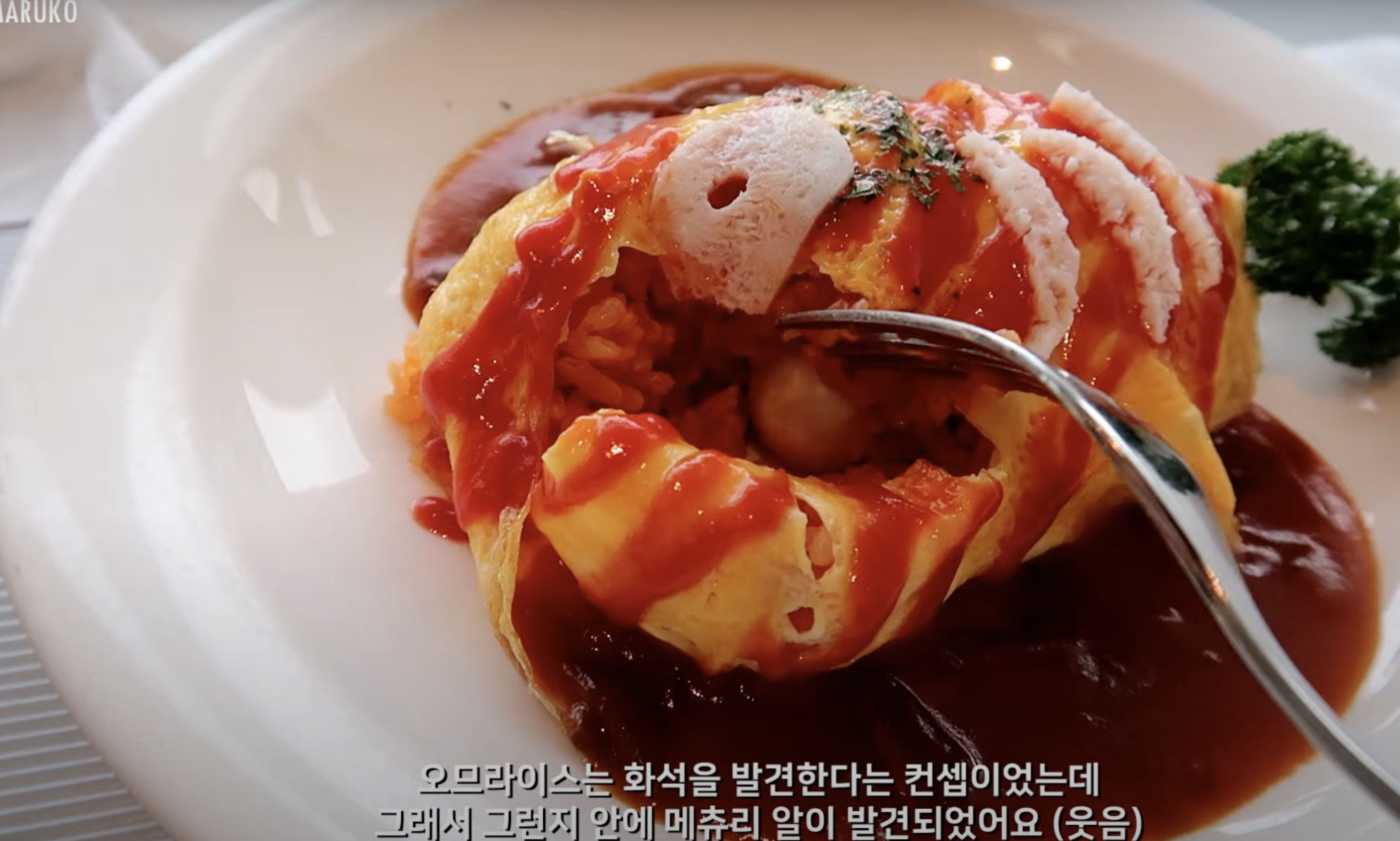 오무라이스를 먹다보면 알을 발견할 수 있어요.