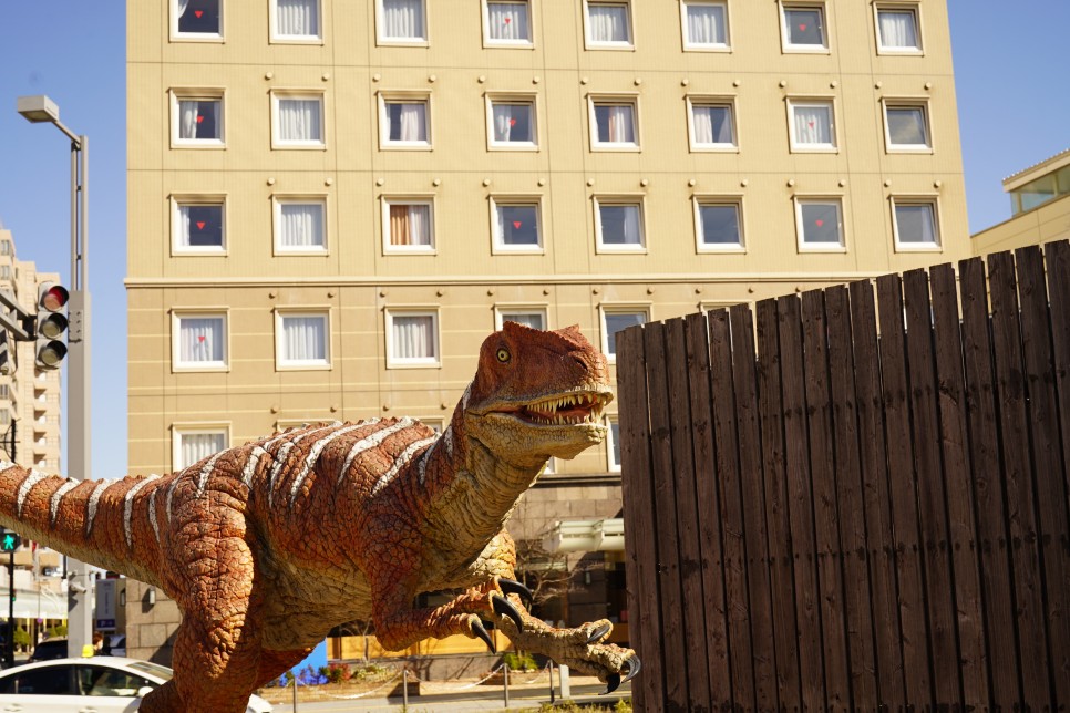 그리고, 우- 우- (?) 하며 후쿠이현 역 주변이 공룡들의 울음소리로 울려퍼집니다.