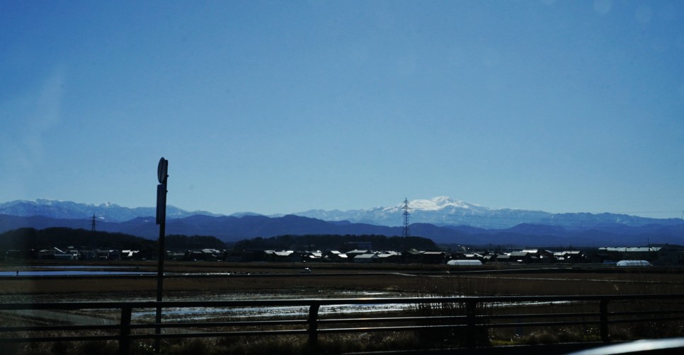 고마츠방향으로 달리다보면 흰 산맥에 아직 눈이 많이 남아있는 모습들을 볼 수 있는데