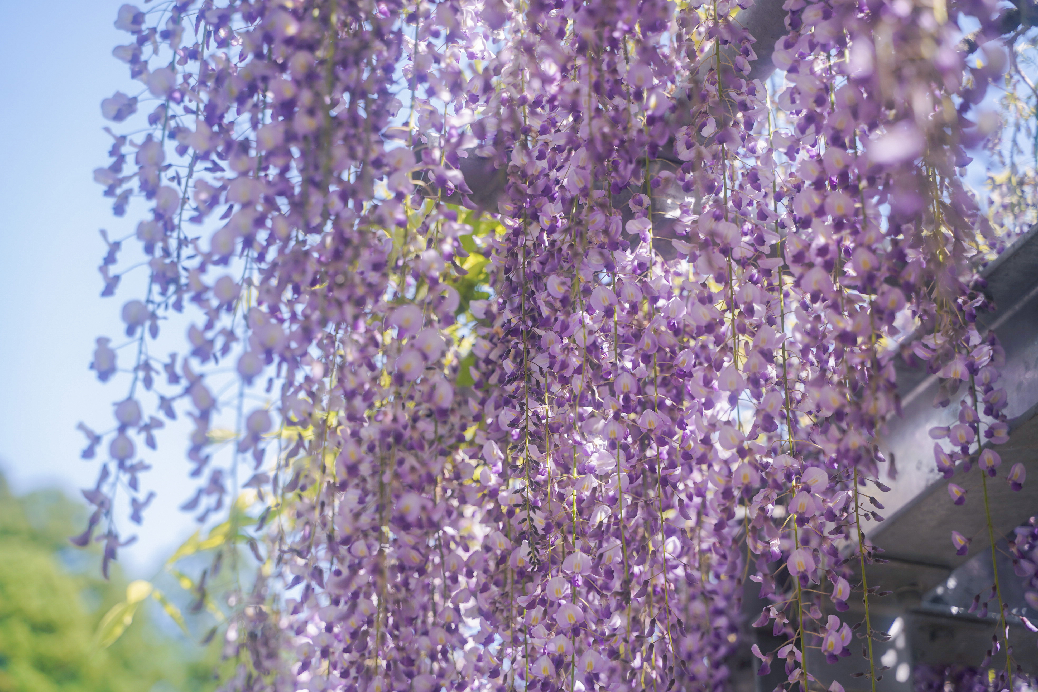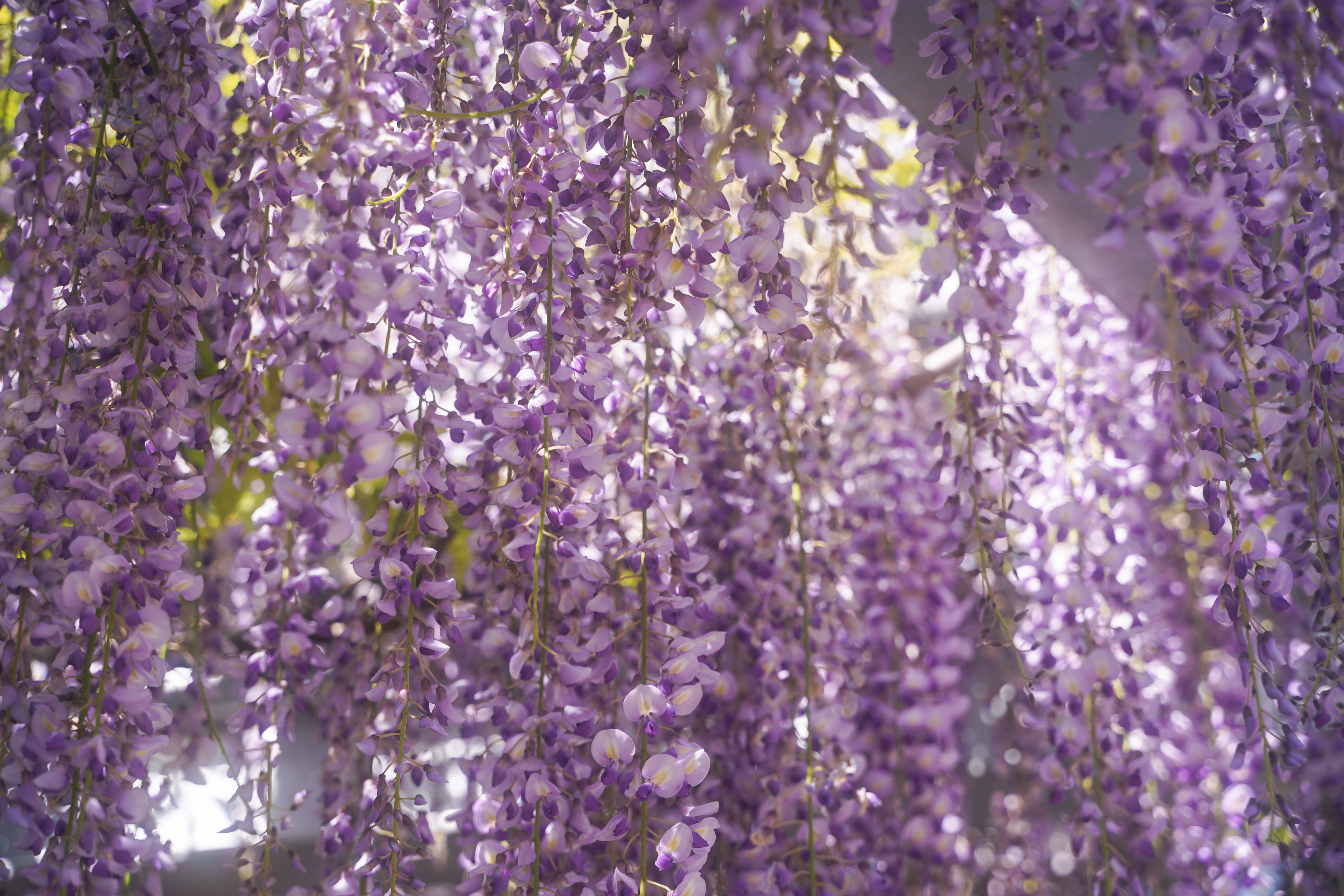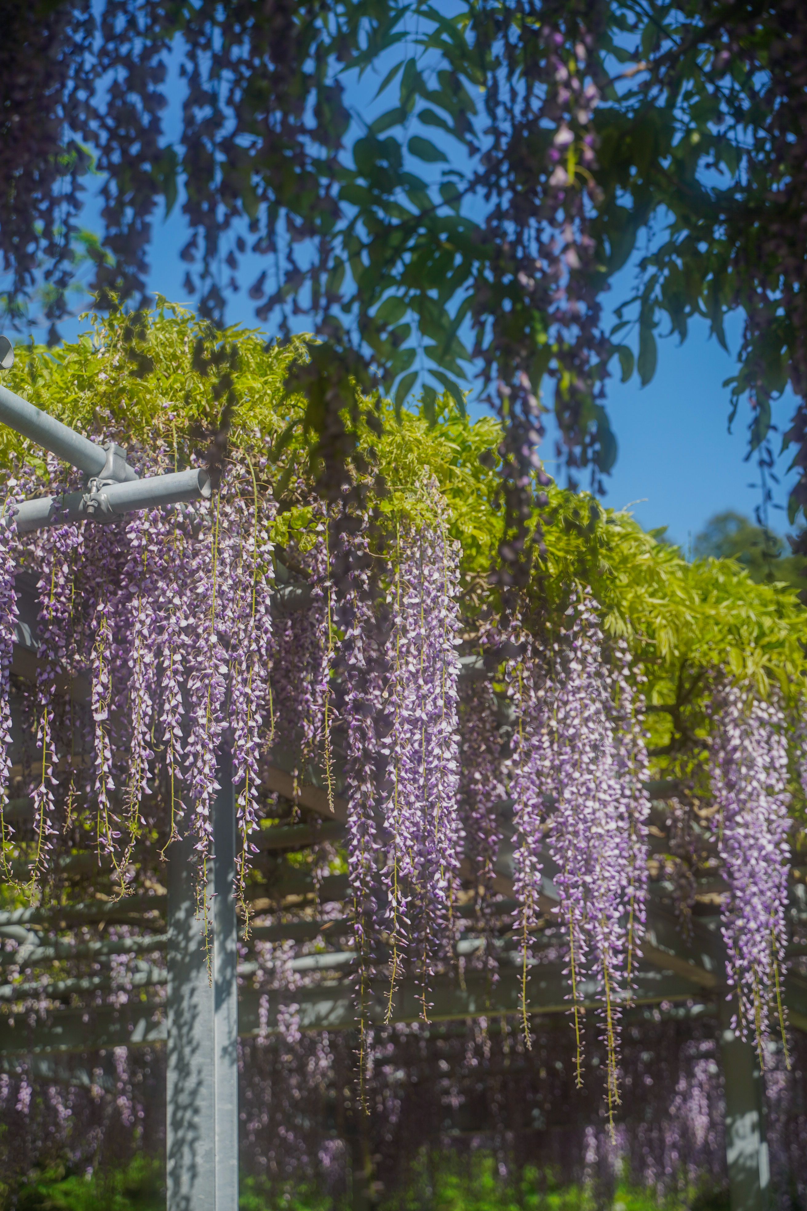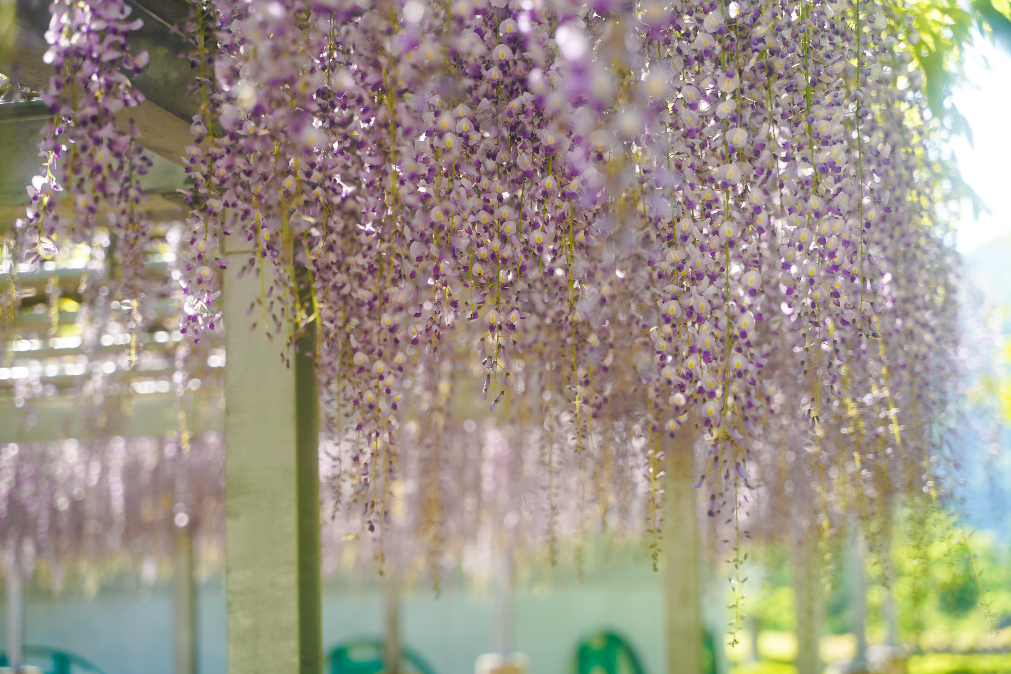 한가득 피어 위에서 떨어지는 듯한 포도송이같은 등나무꽃으로 가득한 공간을