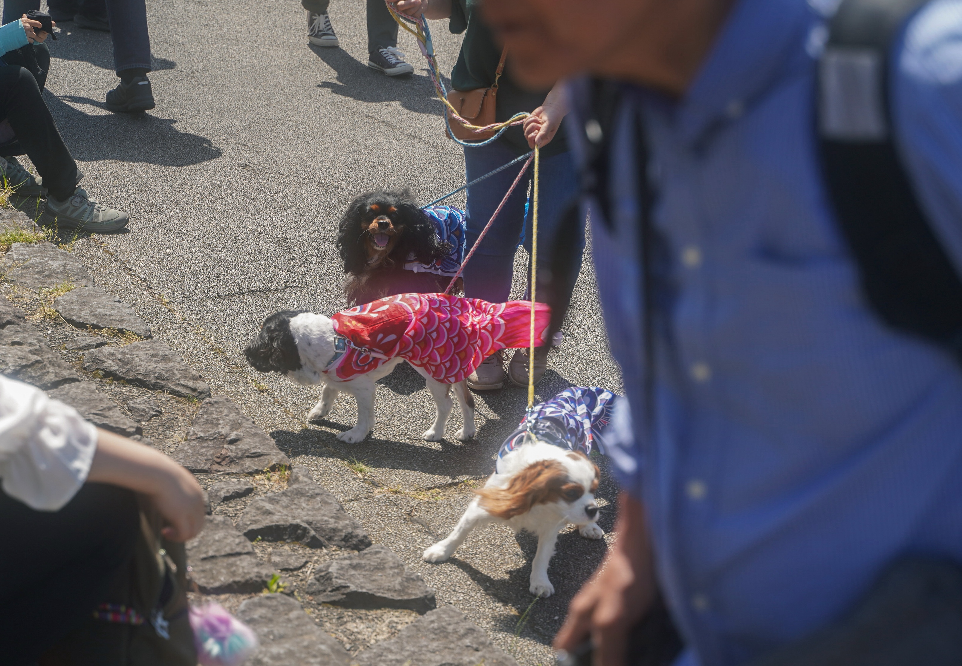 귀여운 코이노보리옷을 입고 있는 강아지들.
