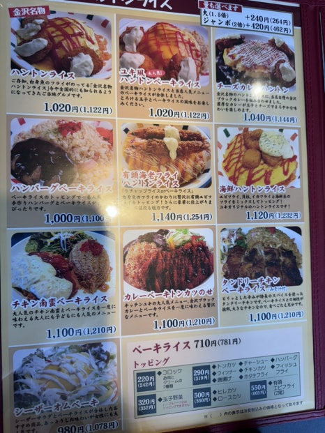 카레 뿐만아니라 베키라이스 등의 가나자와 양식의 메뉴들을 내걸고 있어