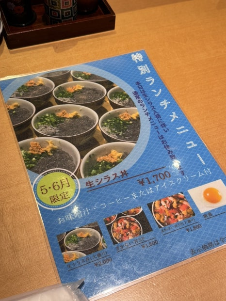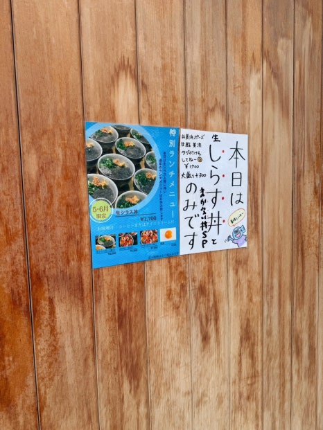 시라스동 혹은 좌석에 있는 메뉴에 보이는