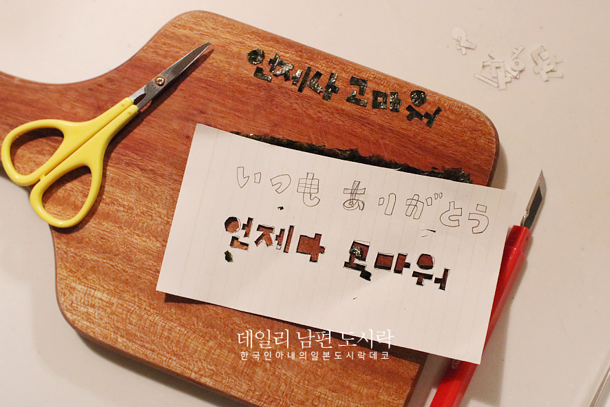 김으로 만드는 메세지 도시락 (김으로 글자 오리기)