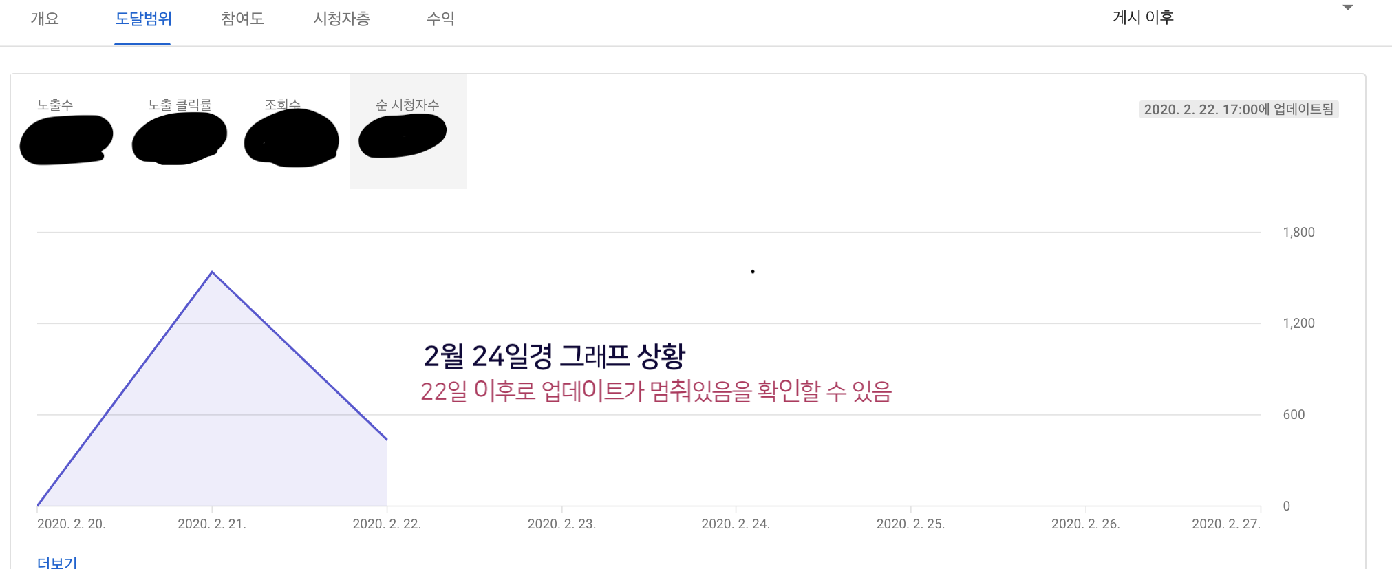 2020년 2월 26일 부로 유튜브 채널의 일반 접속 페이지와 관리자 페이지 양쪽 모두에 표기되는 구독자수가 "같게 표기되기까지" 약 3일 정도의 업데이트 지체 상황이 벌어지게 되었는데요, 관리자 페이지에서조차 3일정도 업데이트 날짜가 표기조차 되지 않는 오류사항은 제가 지금까지 매일매일 체크해온 화면과는 다르게 처음 겪는 오류였으므로, 그에대해 느끼고 생각한 바를 오늘 게시물에서 기록해볼까 합니다.