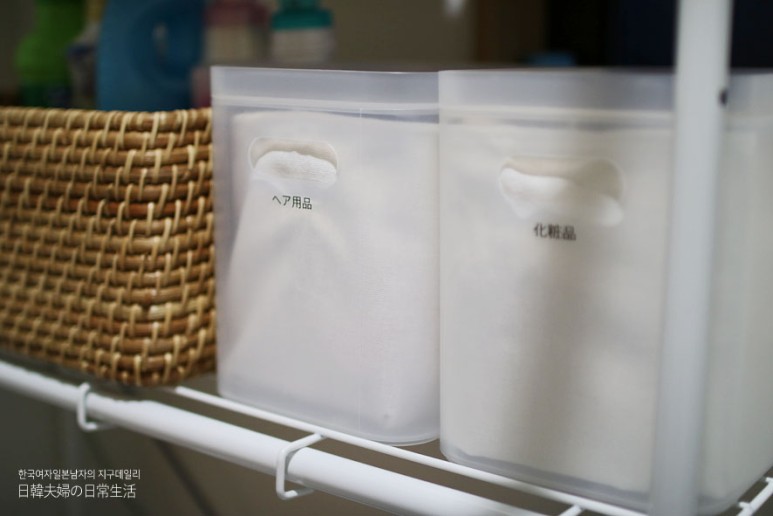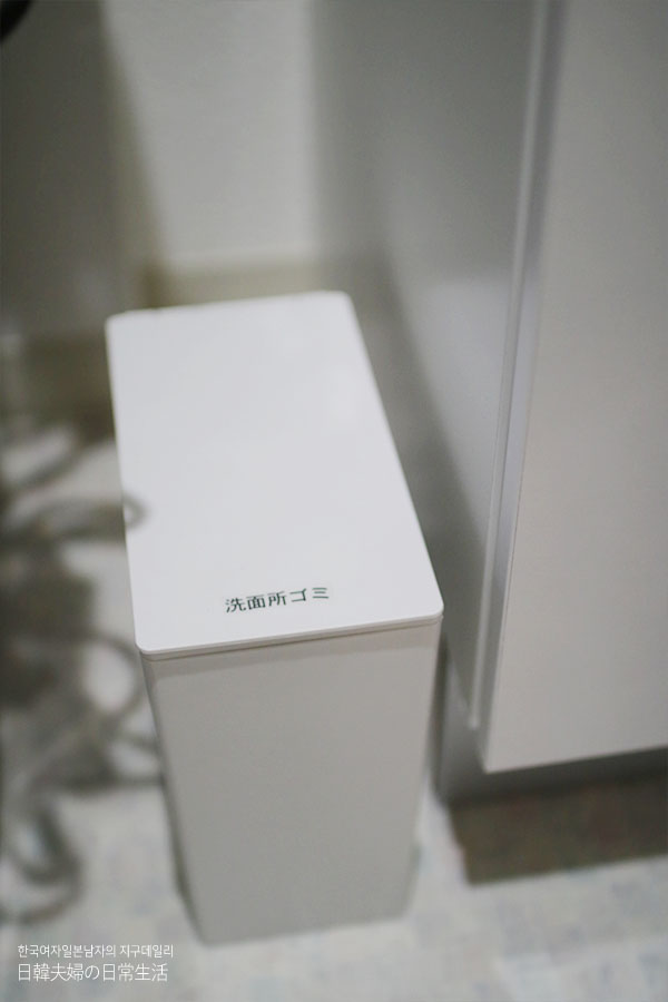 생각해보니 화장실은 별도로 있고, 또 쓰레기통이 딱히 필요는 없다고 생각했기때문에 세탁실에도 생각을 못하고 있었는데, 면봉이나 작은 쓰레기들의 휴지통도 필요해서 작은 휴지통 케이스를 데리고 와봤습니다. (무인양품)