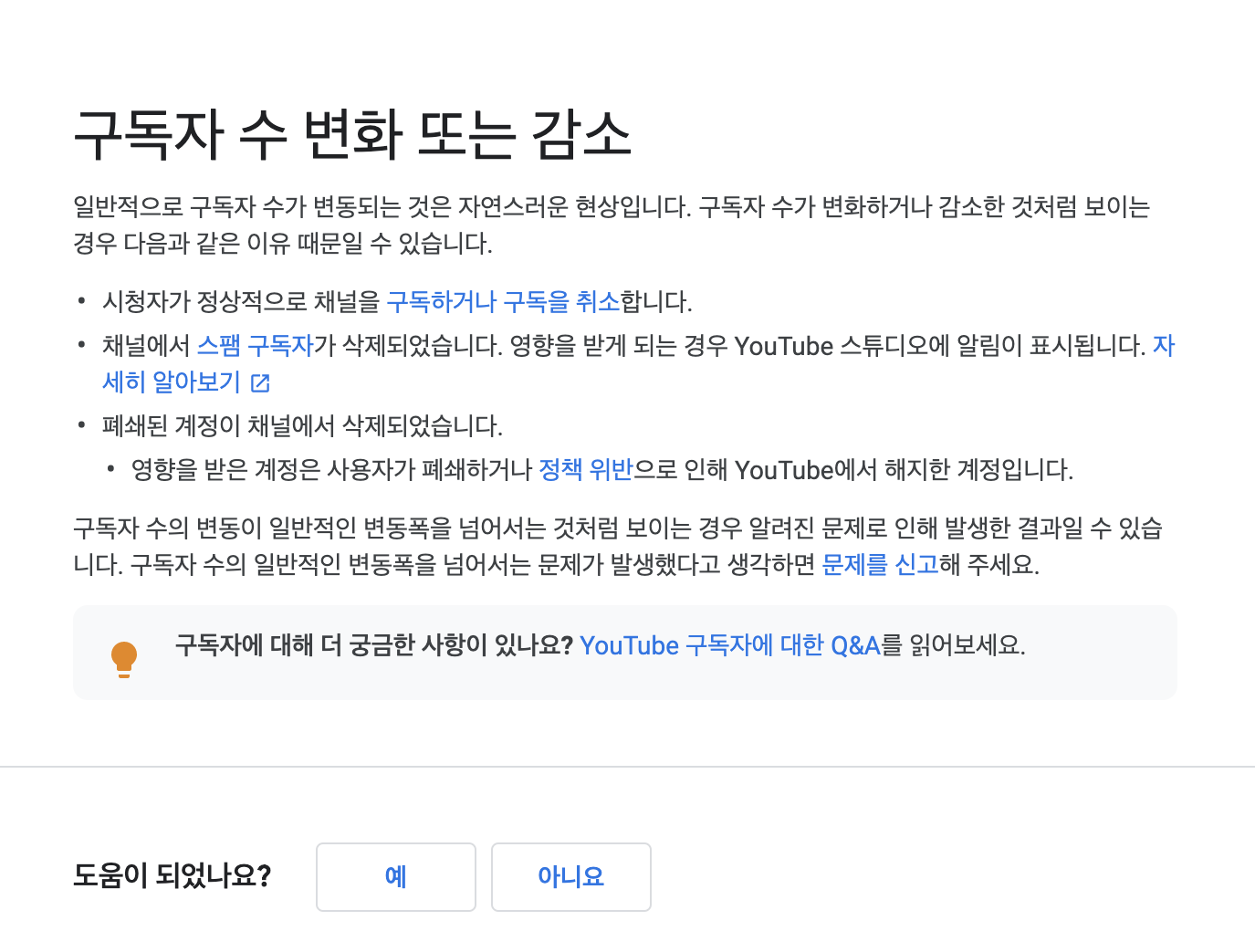 정말 정책 위반으로 해지되거나 폐쇄되거나 불건전한 계정을 알아서 깨끗이 청소해주는 작업때문에 구독자수가 감소되는것이라면