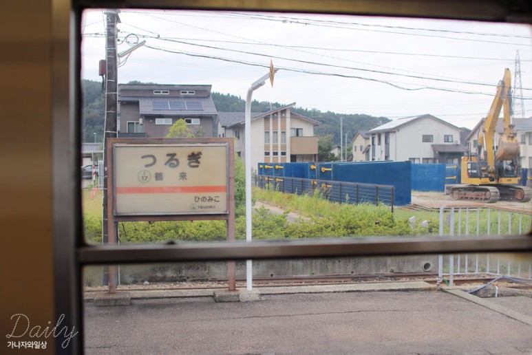 남편이 앉아있는 좌석 뒷편으로 츠루기역 글자가 보입니다. 아쉬대로 멀리서나마 찍어보아요. 멋진 남편께서 찍혀주셨습니다.