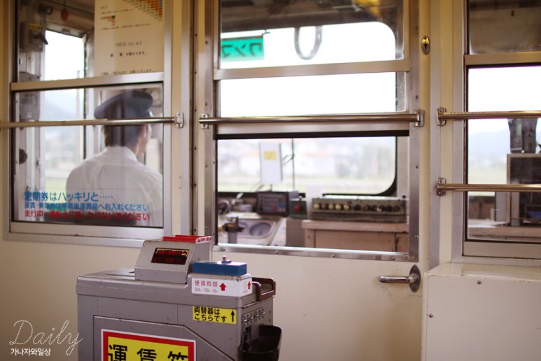 가끔 역 자체가 승강장만 떡하니 있는 역이있어요. 티켓없이 그냥 바로 올라탈 수 있는, 1만엔 정도밖에 가지고있지 않다면 좀 곤란하지만, 왠만한 잔돈을 바꿀수도 있으니, 잔돈이 없는 분들은내리는 방면, 그러니까 내릴때에는 출발하고 있는 방향의 열차의 머리부분에서밖에 문이 열리지 않기때문에그쪽에서 역무원에게 도움을 청할 수 있어요. 잔돈은 달리는 열차 안에서도 언제든 수시로 바꿀 수 있습니다.v그냥 혼자가서 지폐넣고 잔돈 바꿔도됩니다.